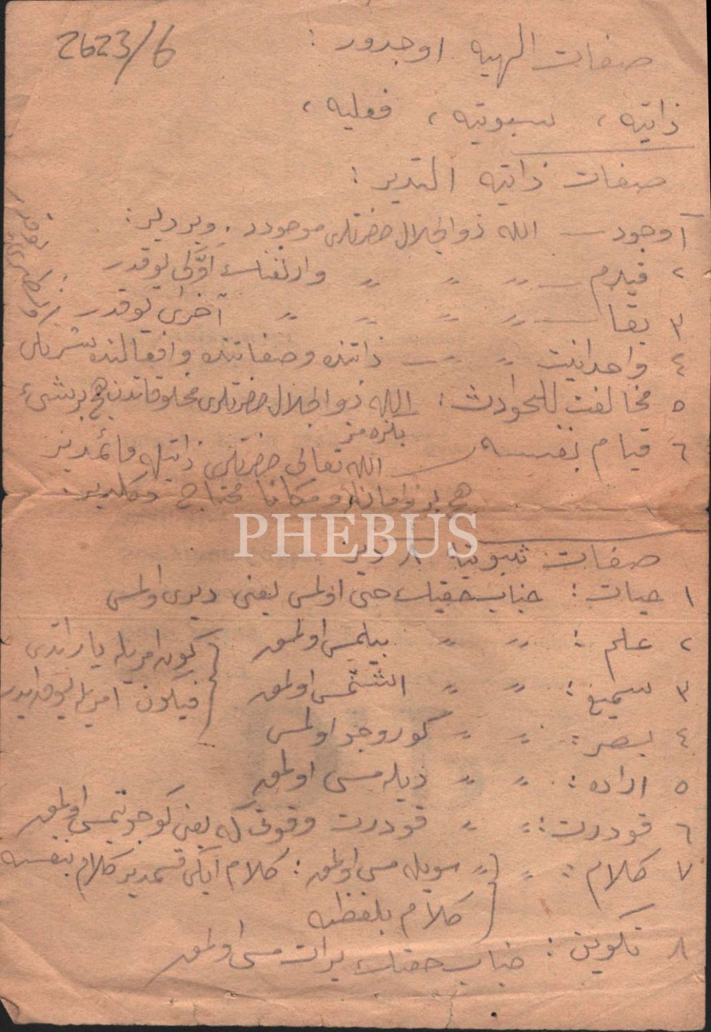 Arkasında Osmanlıca el yazısı Allah'ın sıfatları yazmaktadır.