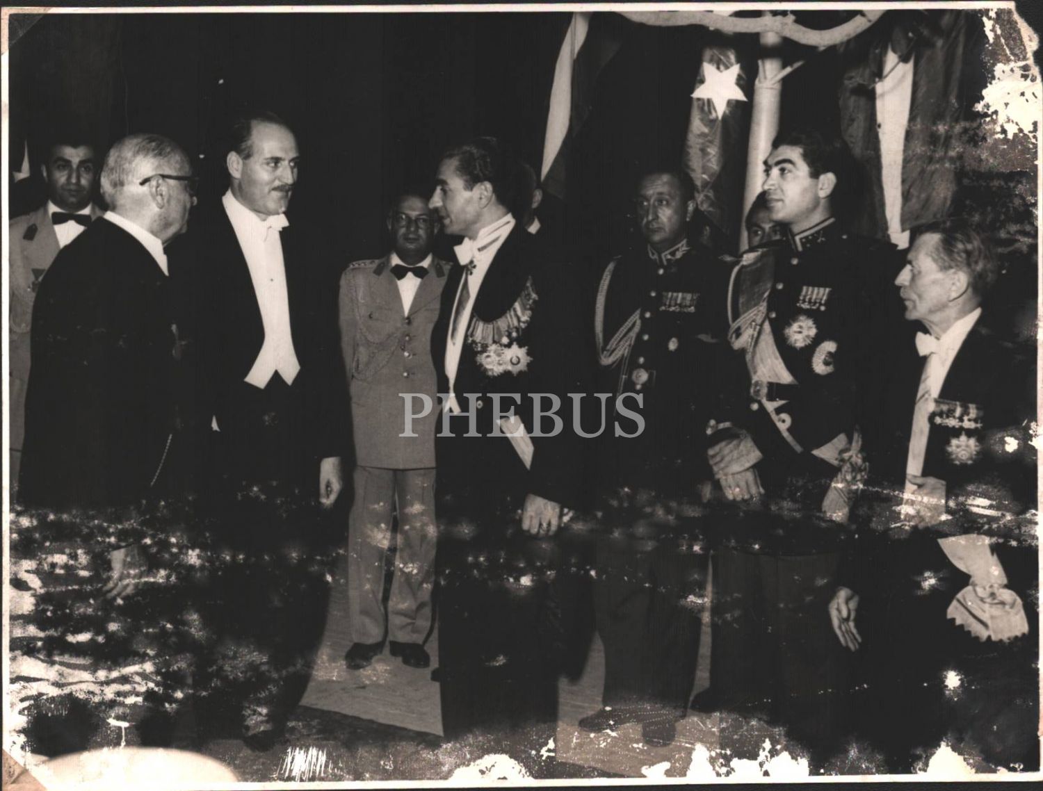 Celal Bayar ve Fatin Rüştü Zorlu rütbeli askerlerle görüşürken, 16x20 cm