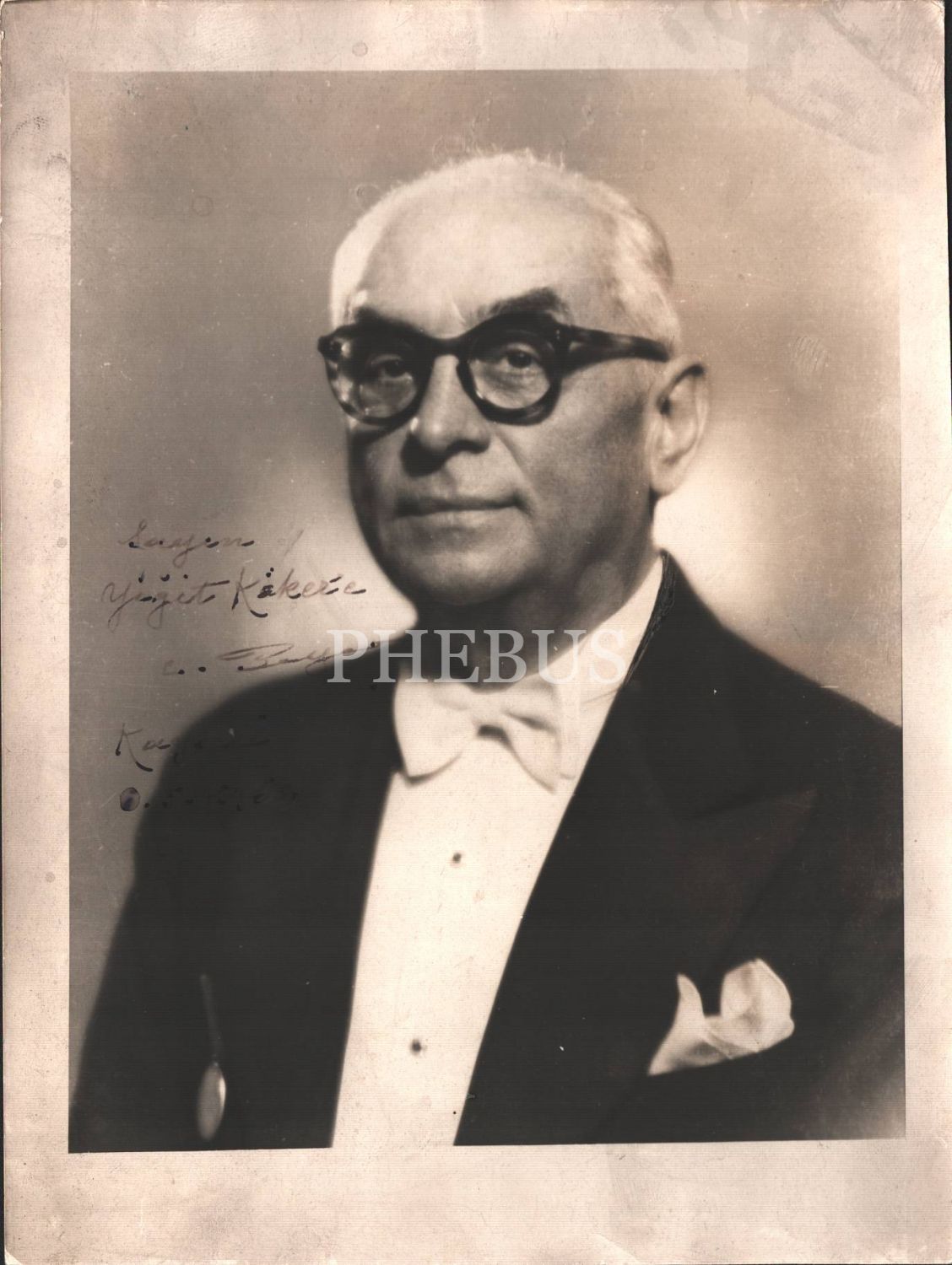 Celal Bayar´dan Yiğit Köker´e ithaflı ve imzalı fotoğraf, 18x23 cm