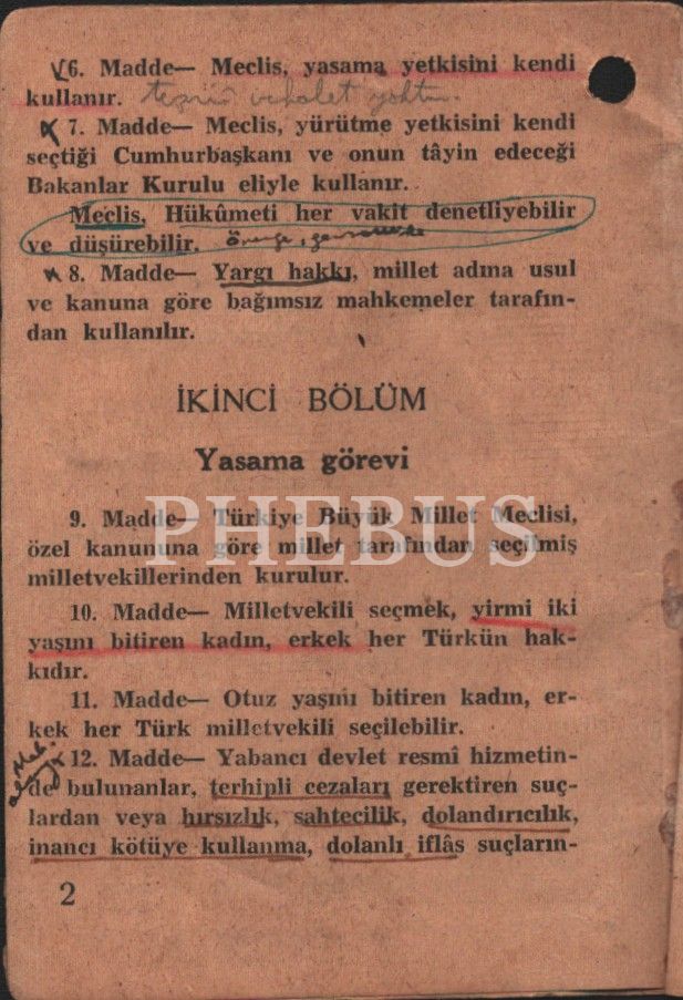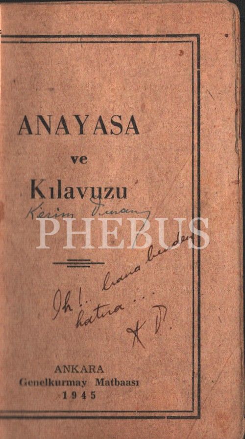 ANAYASA VE KILAVUZU, Ankara Genelkurmay Matbaası, 1945, 22 sayfa, 9x11 cm