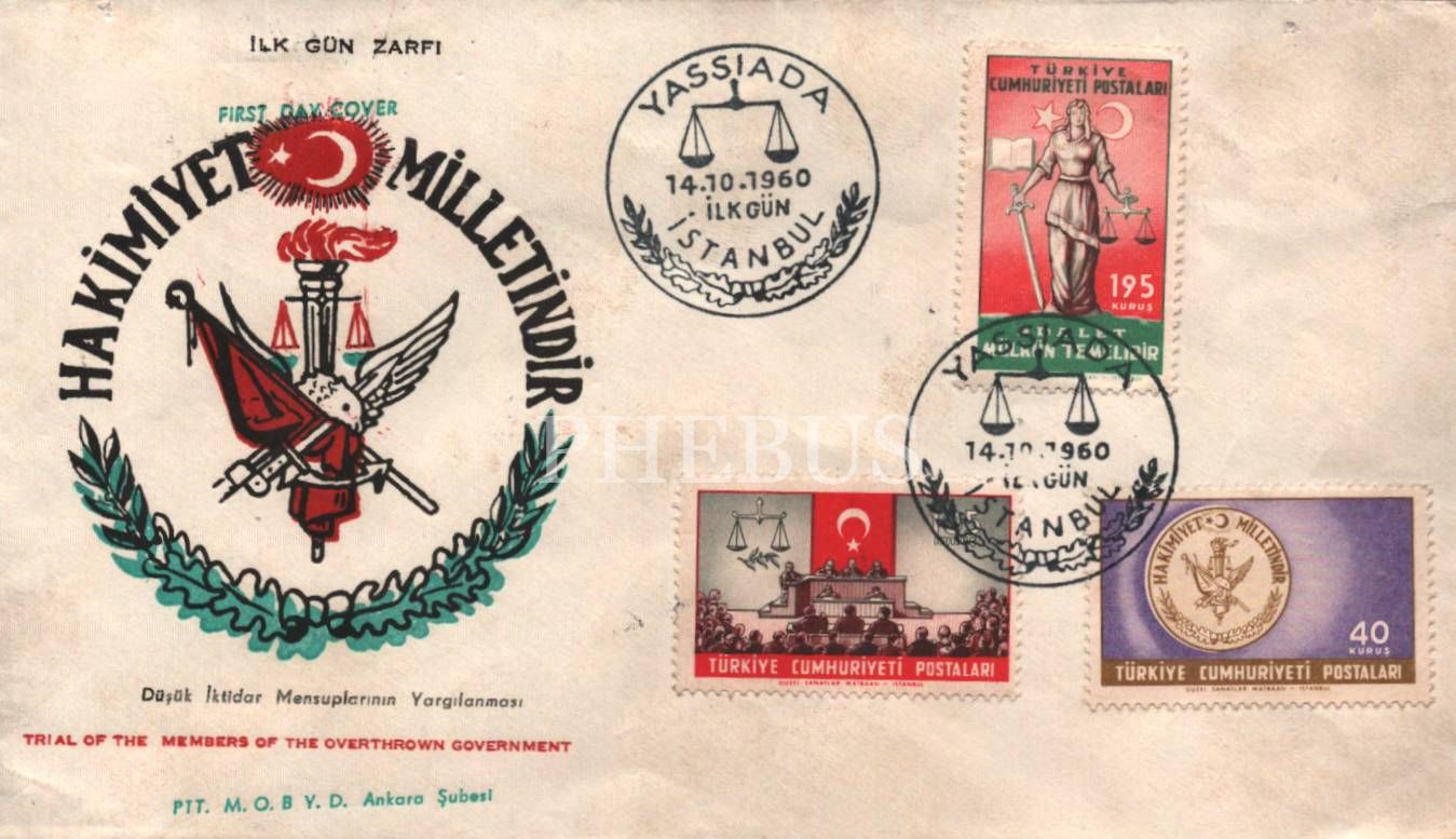 27 Mayıs amblemli ve "Yassıada 1960" kaşeli ilk gün zarfı, 10x18 cm