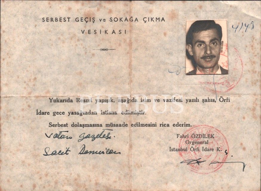 Vatan gazetesi çalışanına serbest geçiş ve sokağa çıkma vesikası, 14x19 cm