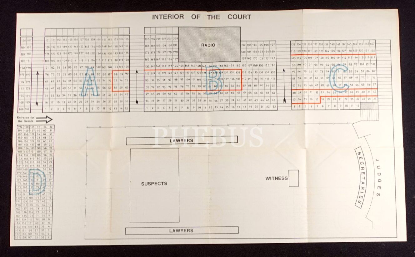 Yassıada mahkeme salonunun oturma planı, 32x54 cm