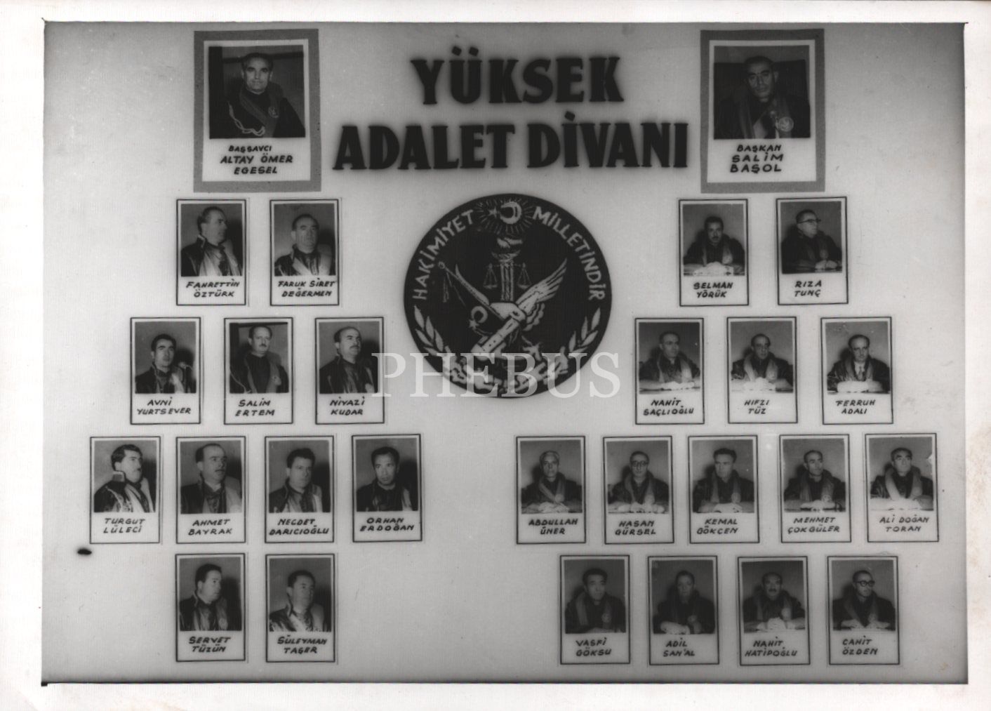 Yassıada Yüksek Adalet Divanı üyeleri, T.C. Ordusu Foto Film Merkezi kaşeli, 12x18 cm