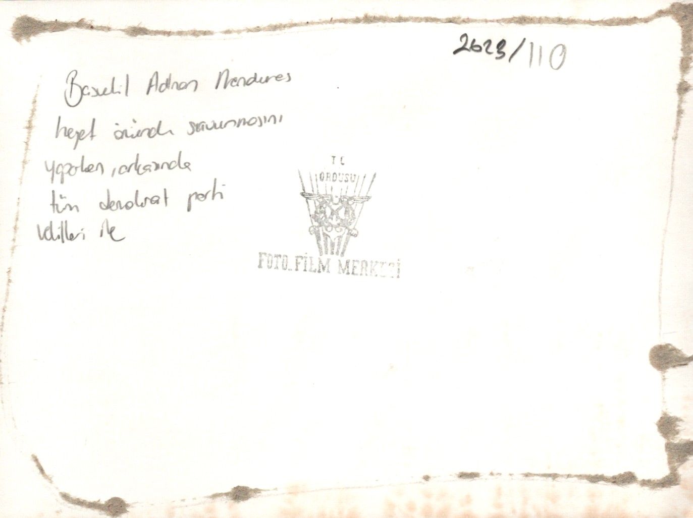 Adnan Menderes heyet önünde savunmasını yaparken, T.C. Ordusu Foto Film Merkezi kaşeli, 12x18 cm