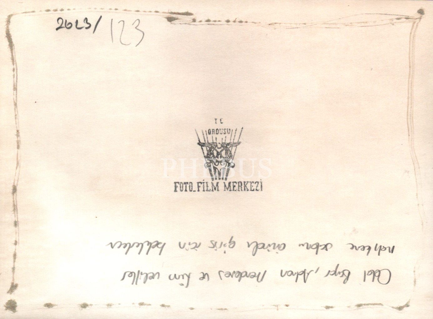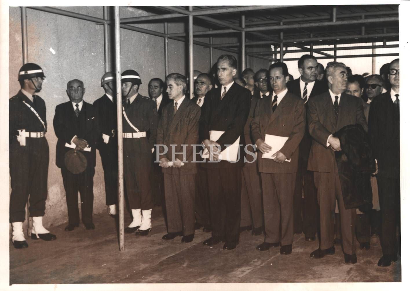 Celal Bayar ve bütün Demokrat Partili vekiller mahkeme salonu önünde giriş için beklerken, T.C. Ordusu Foto Film Merkezi kaşeli, 12x18 cm