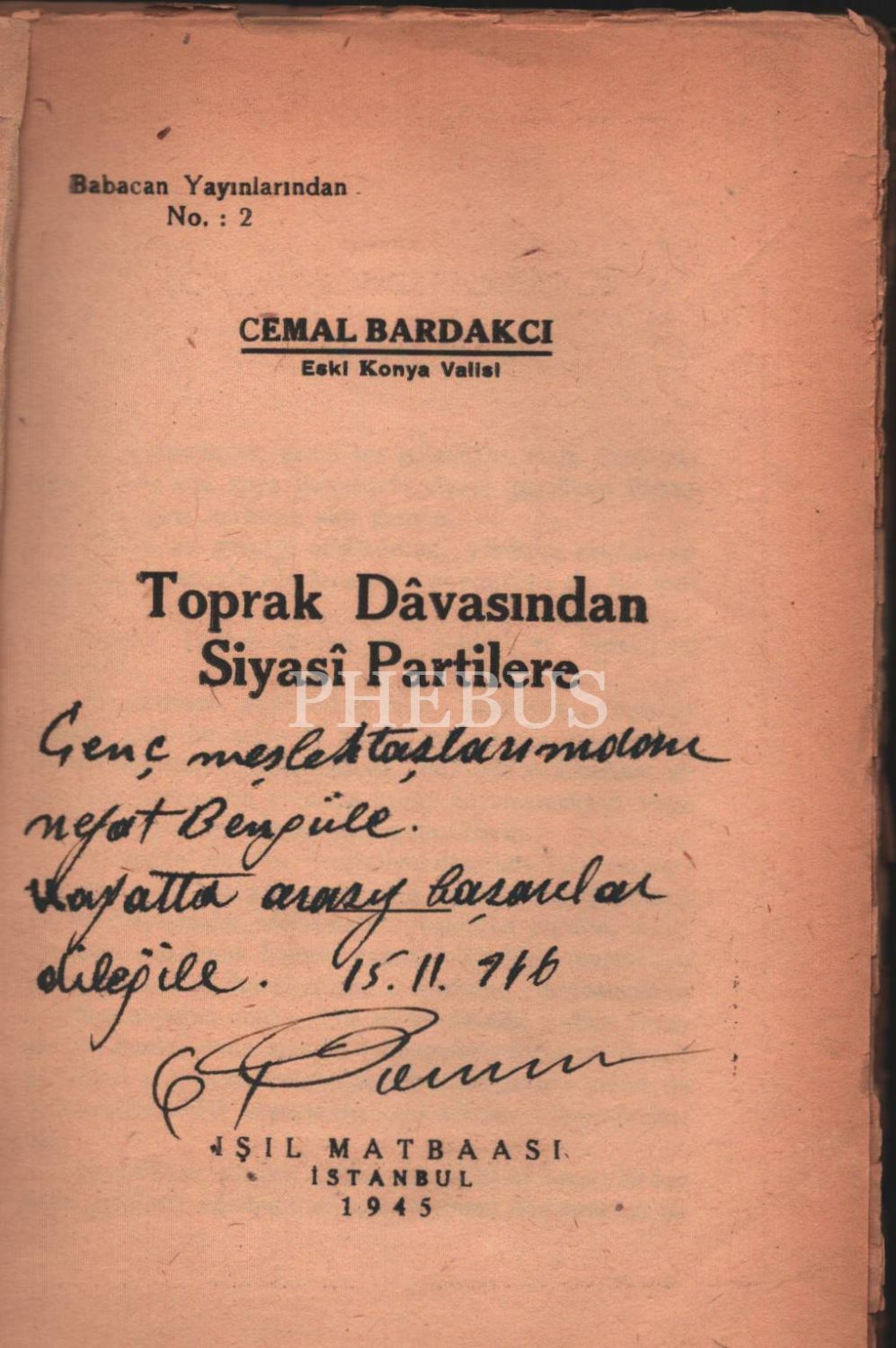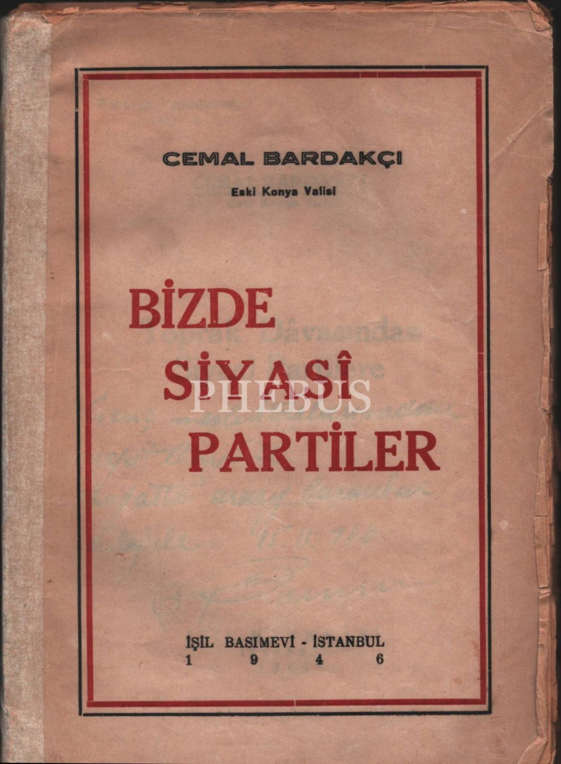 BİZDE SİYASÎ PARTİLER, Cemal Bardakçı'dan ithaflı ve imzalı, İstanbul 1946, İşil Basımevi, 112 sayfa, 14x20 cm