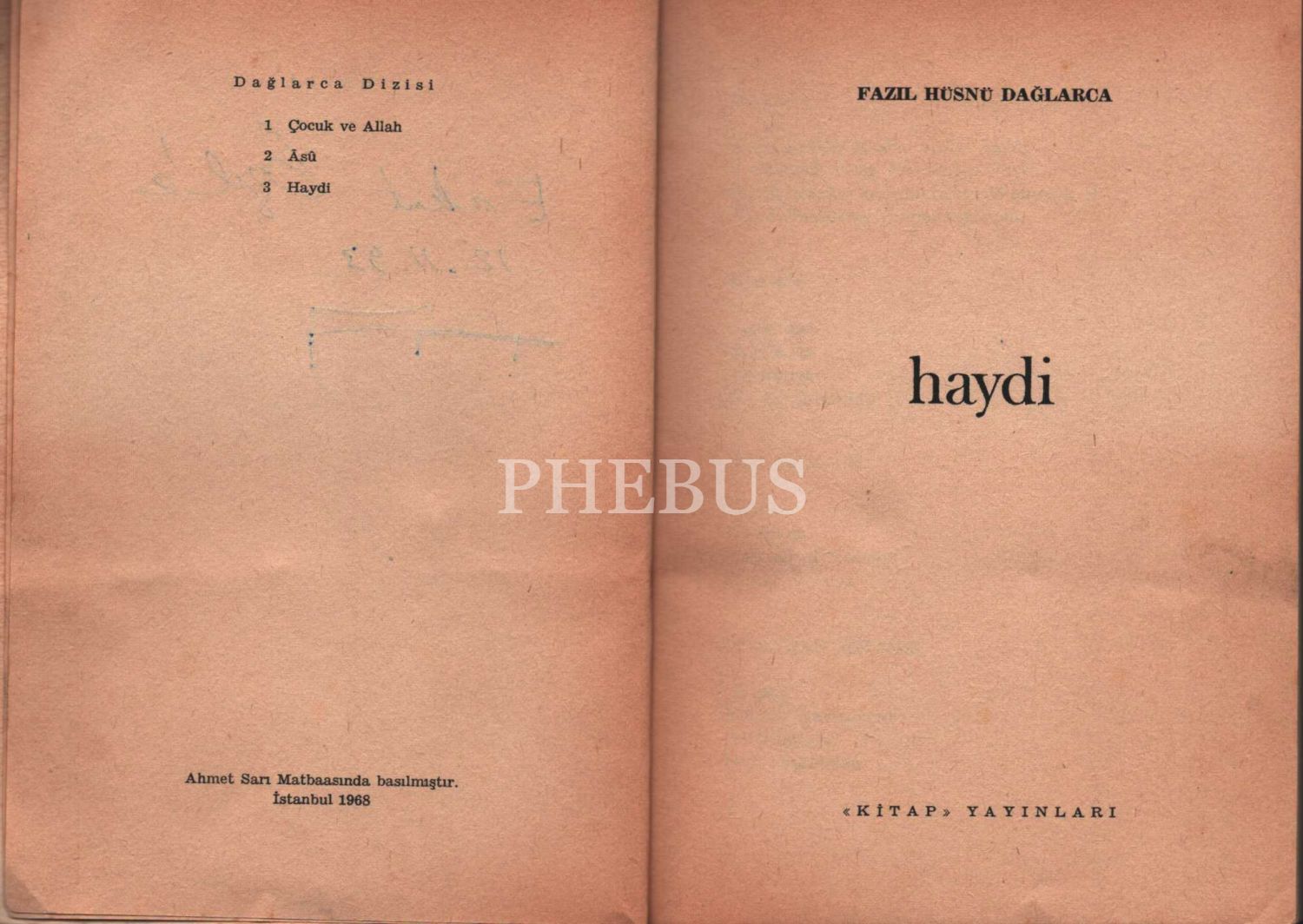 HAYDİ, Fazıl Hüsnü Dağlarca'dan ithaflı ve imzalı, Kitap Yayınları, İstanbul 1968, 318 sayfa, 13x18 cm