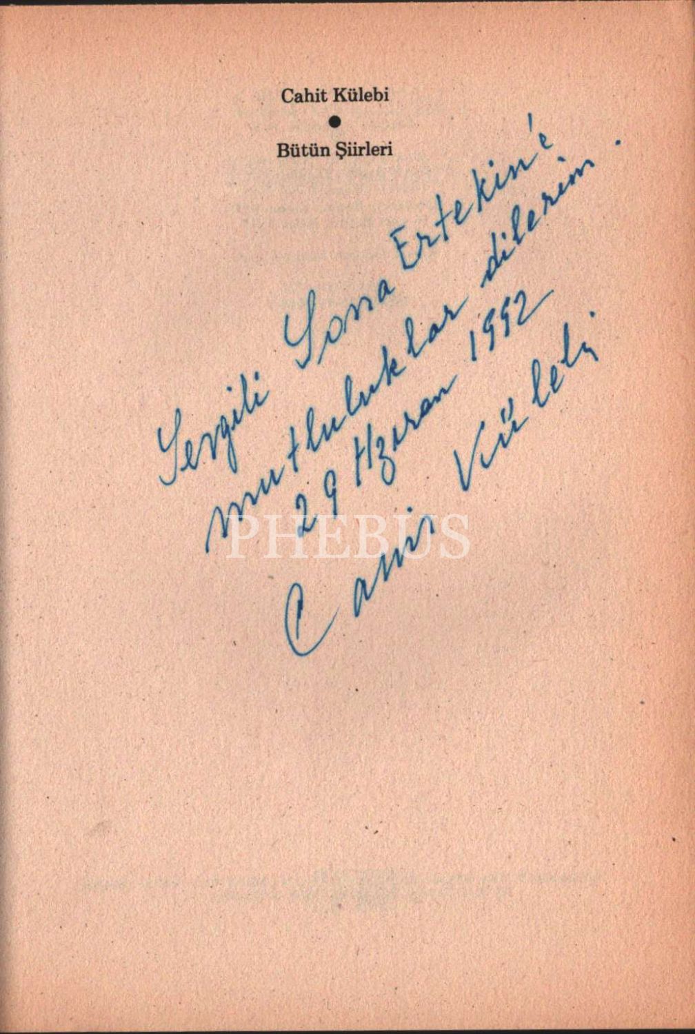 BÜTÜN ŞİİRLERİ, Cahit Külebi'den ithaflı ve imzalı, Adam Yayınları, 258 sayfa, 13x19 cm