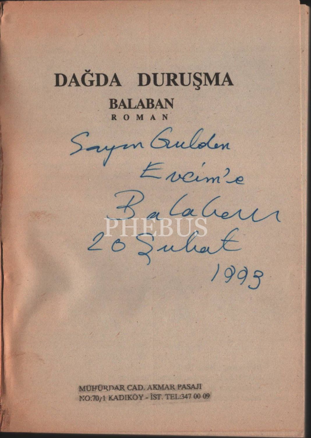 DAĞDA DURUŞMA, Balaban'dan ithaflı ve imzalı, Bilim Kitabevi, İstanbul 1990, 390 sayfa, 13x19 cm