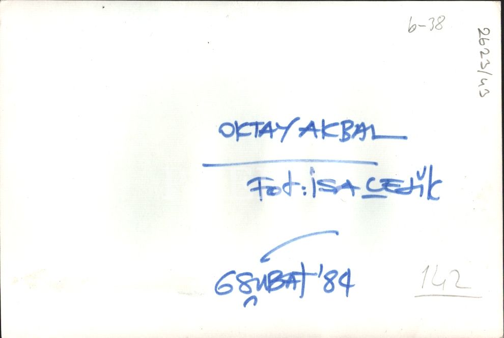 Oktay Akbal, 1984 tarihli, Foto İsa Çelik, 14x21 cm