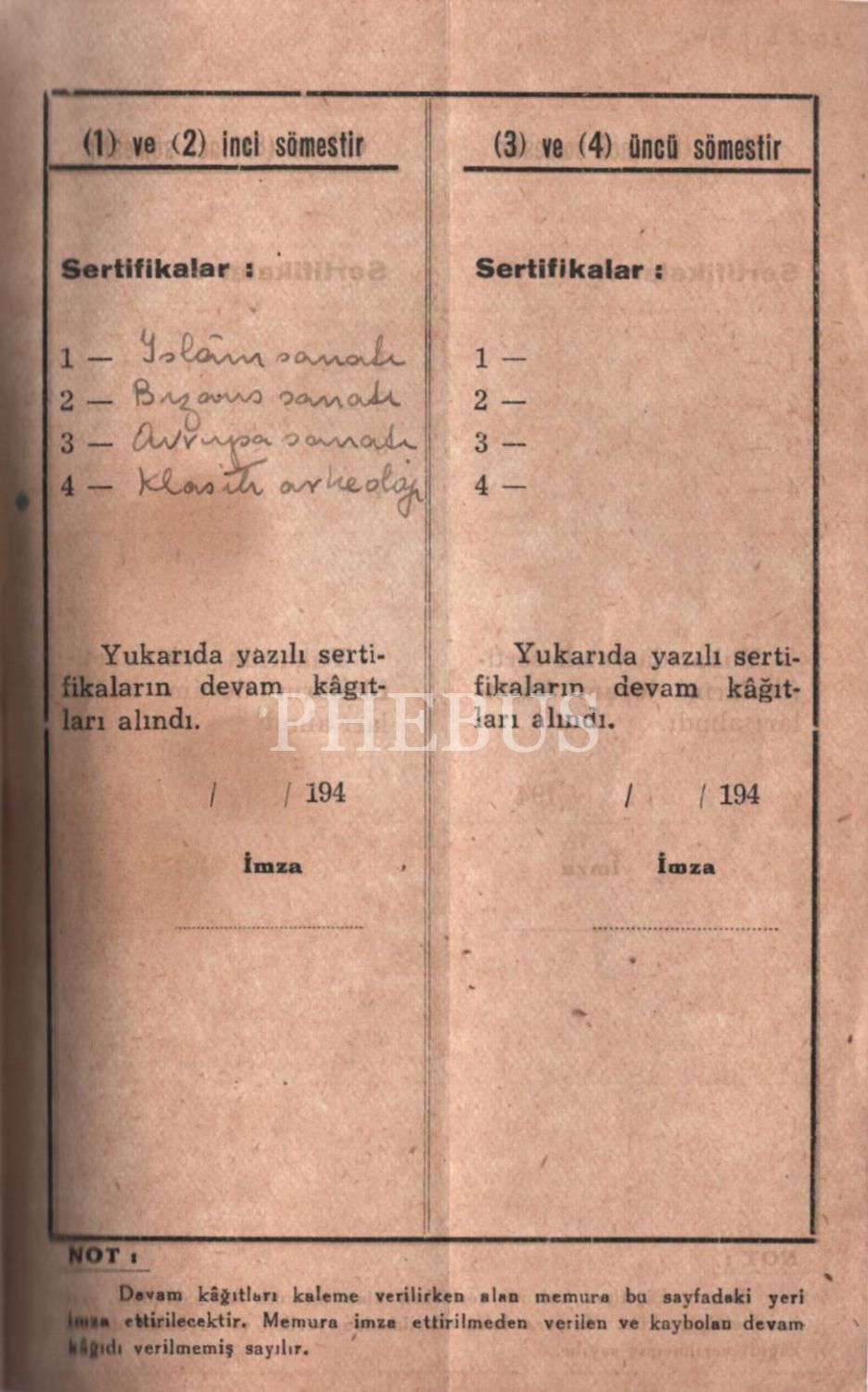 Sanat tarihçisi Semavi Eyice imzalı, Bizans Sanatı Sertifikası, 12x20 cm