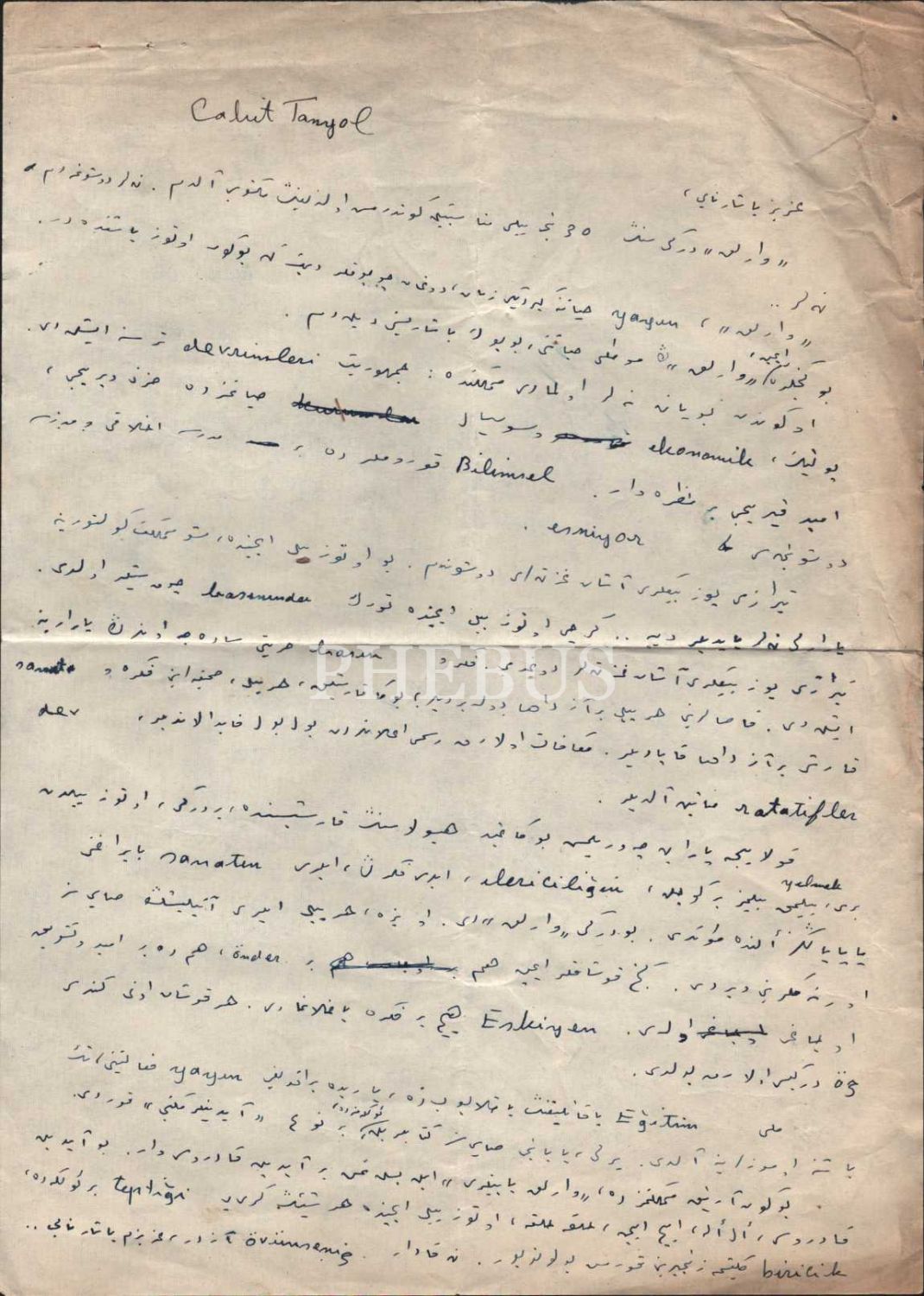 Cahit Tanyol´dan Yaşar Nabi Nayır´a hitaben yazılmış mektup, 22x30 cm