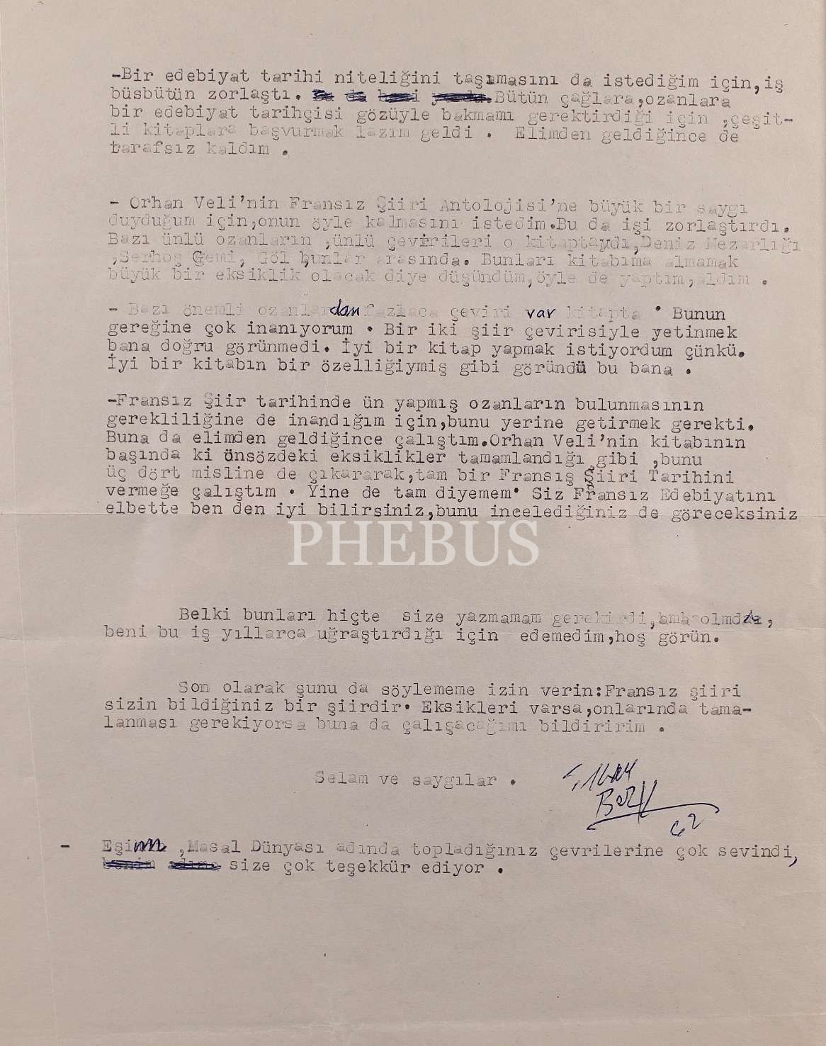 İlhan Berk (1918-2008) ”Şiiri her şeyden önce lirik olarak düşünmemden ileri geliyor. Bu bir çizgide ilerliyor, benim şiirim lirik ve görsel” ifadeleriyle şiirini tanımlayan, modern dünya şiirinin iki büyük şairi sayılan Arthur Rimbaud ve Ezra Pound´un şiirlerini çeviren, İkinci Yeni Akımı şairlerinden olan şairimizdir. Kaleme aldığı bu mektup ise Fransız Şiiri adlı kitabın içeriğine dairdir.
