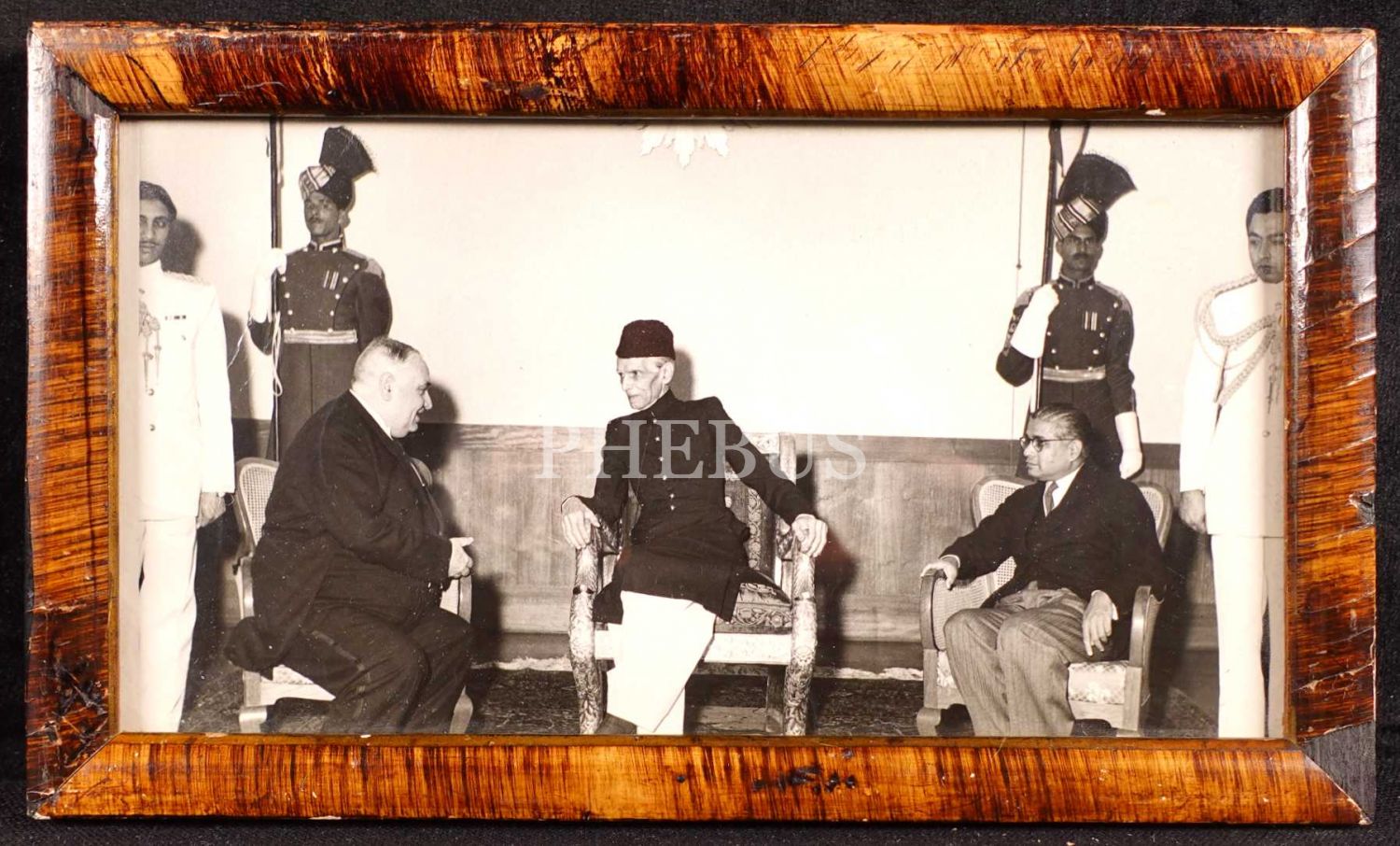 Pakistan Büyükelçisi Yahya Kemal Beyatlı ile Pakistan Devlet Başkanı Muhammed Ali Cinnah, çerçeve: 13x22 cm
