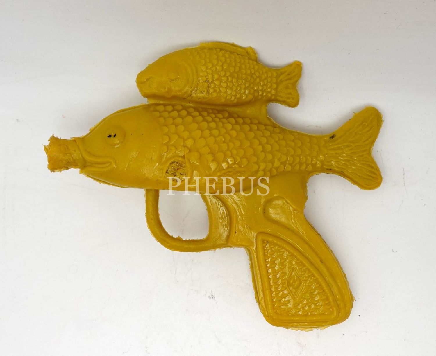 Şişme plastik oyuncak: balık formunda tabanca, 14x12x3 cm