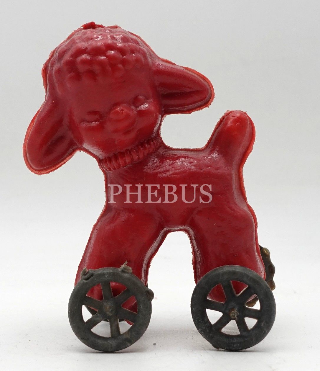 Tekerlekli plastik oyuncak kuzu, 10x5x2 cm