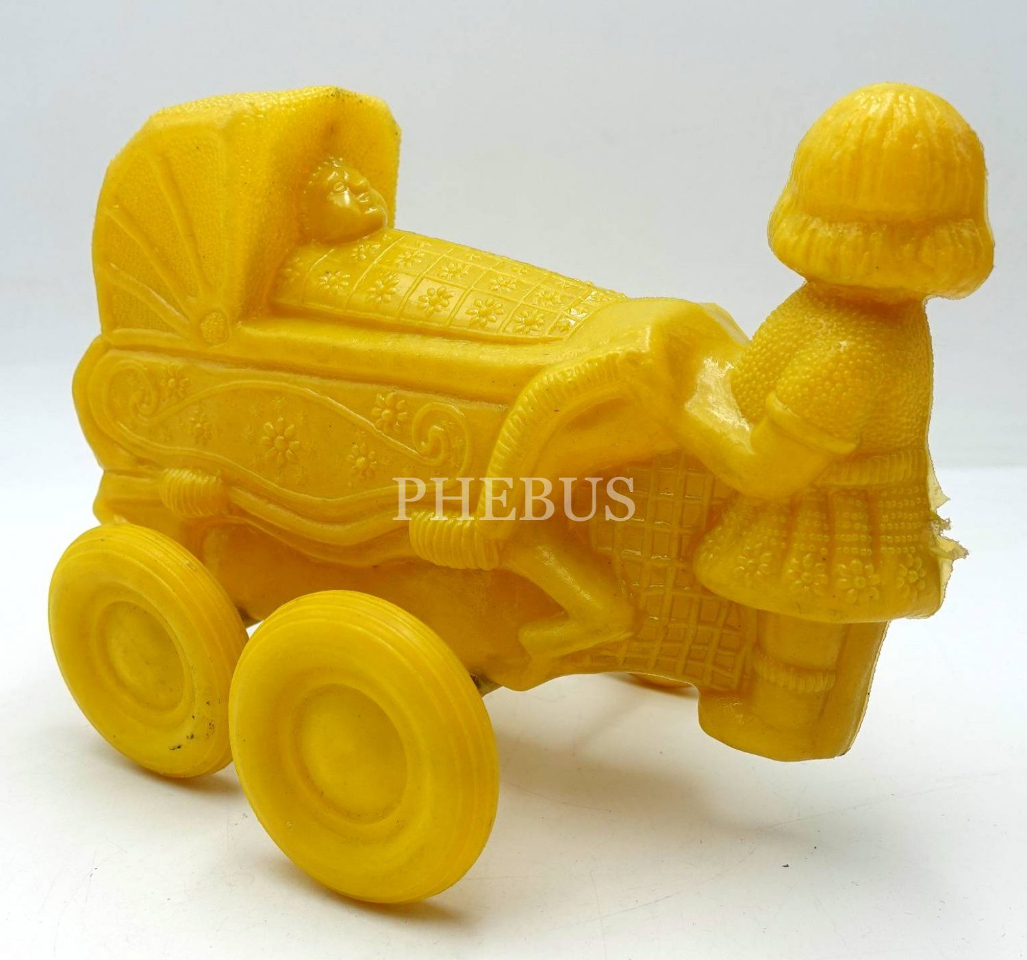 Tekerlekli plastik oyuncak: anne ve bebek arabası, 17x13x5 cm