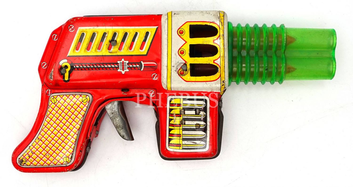 Japon malı HAJI marka sesli teneke oyuncak tabanca, 22x10 cm