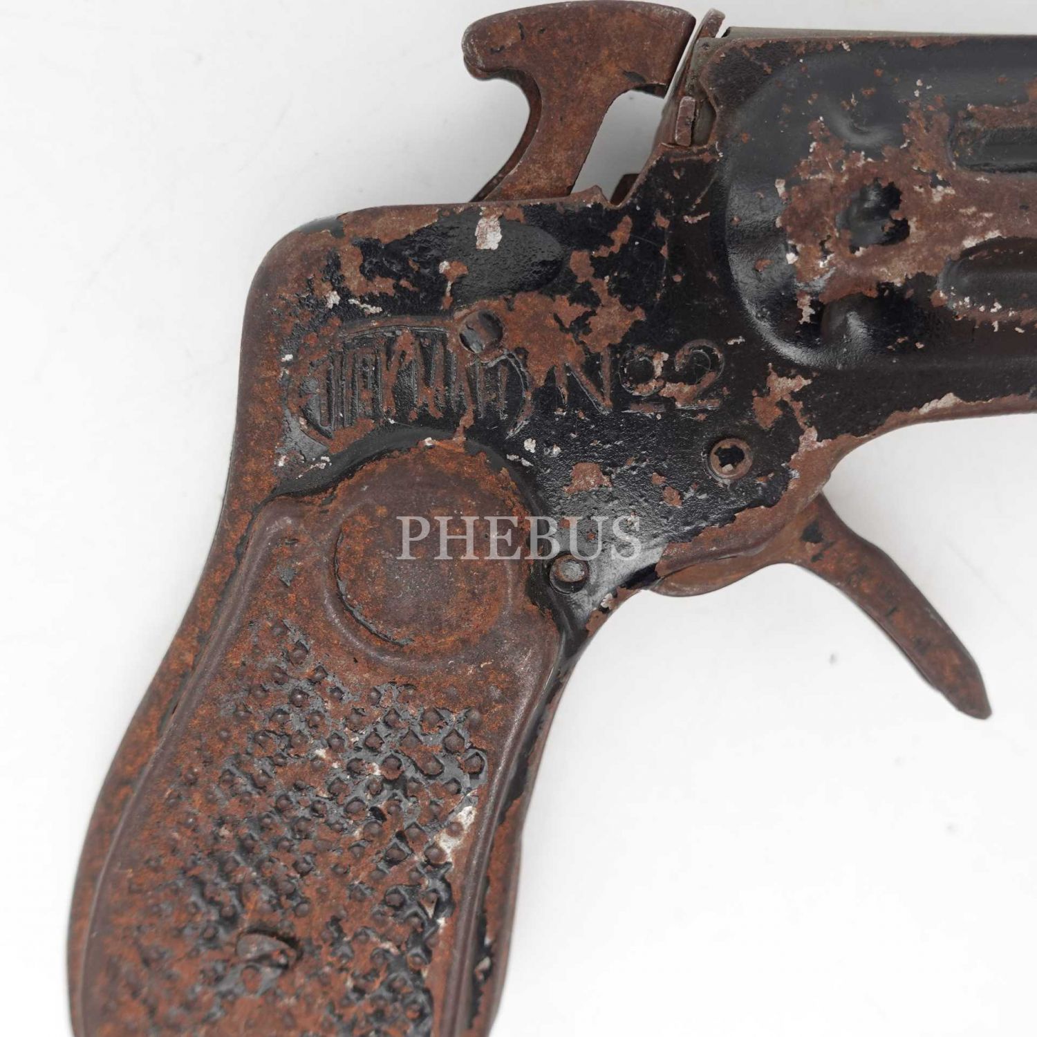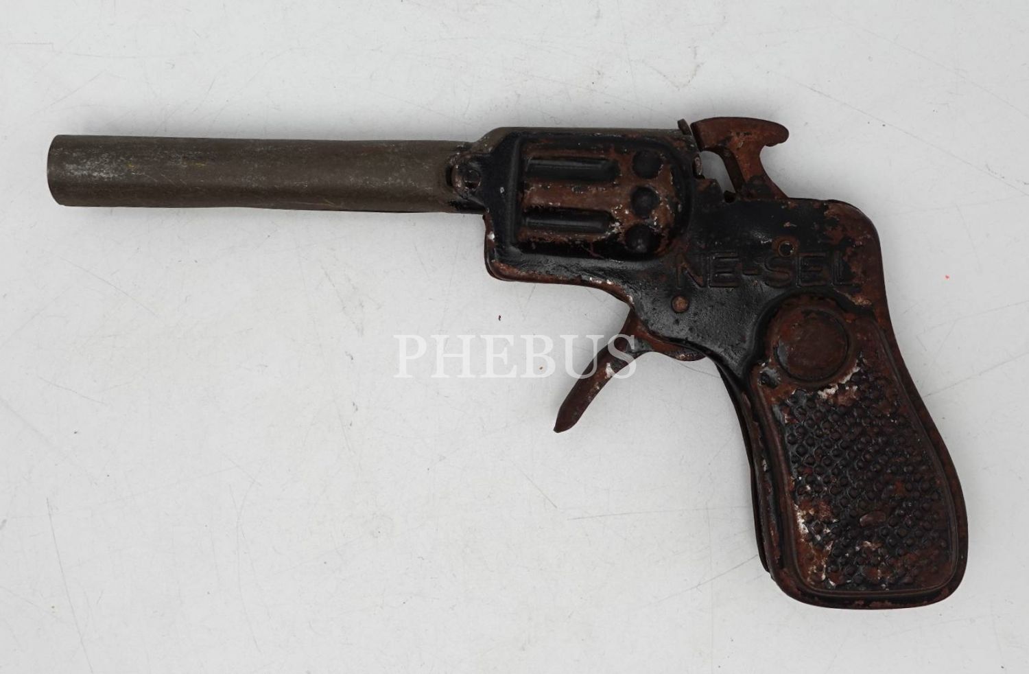 Yerli malı NE-SEL marka teneke oyuncak mantar tabancası, çalışmıyor haliyle, 12x8 cm