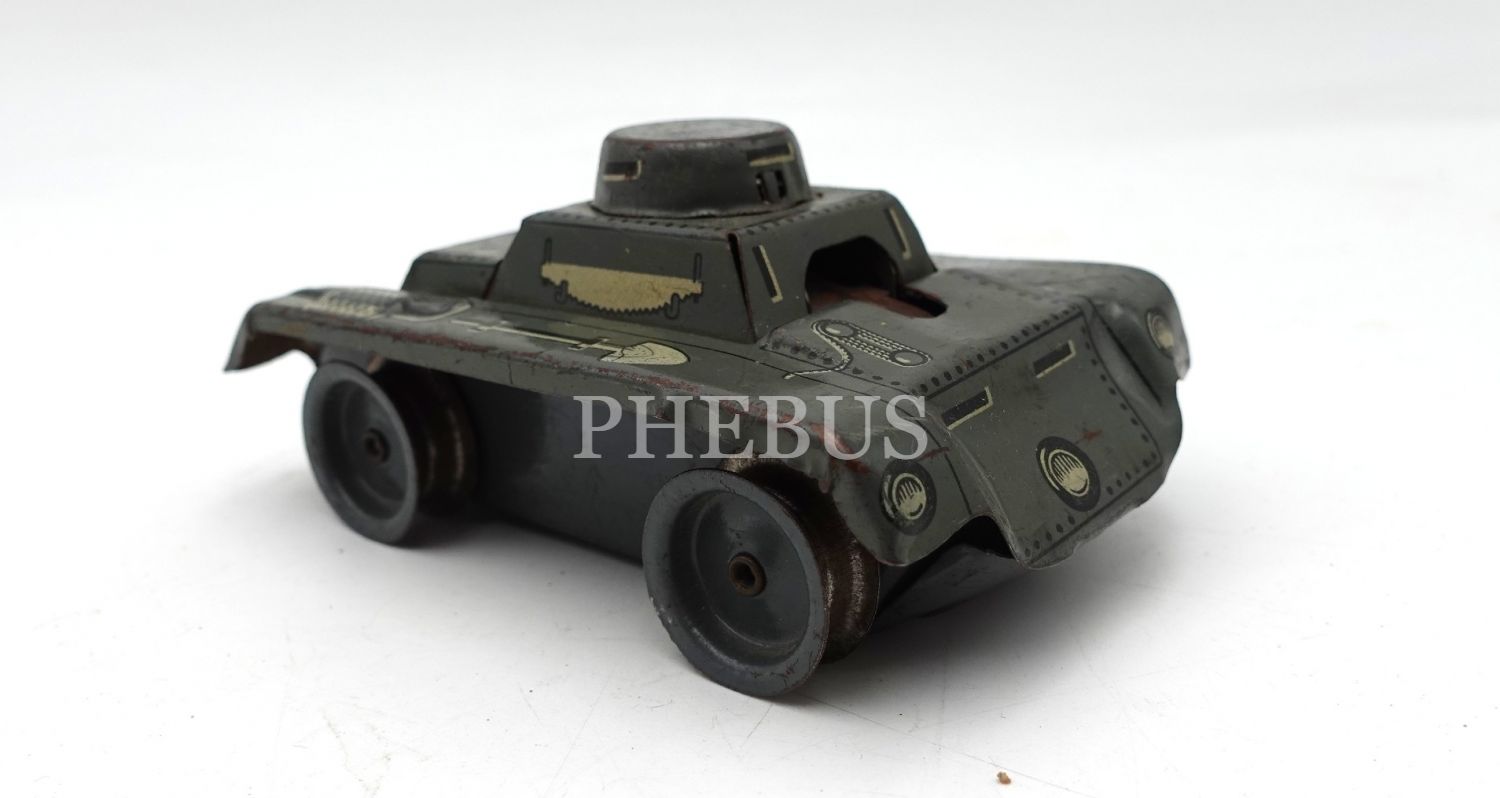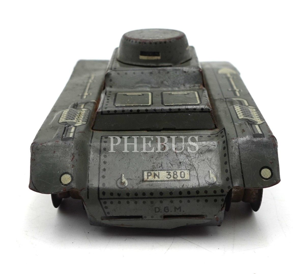 Almanya malı kurmalı teneke oyuncak tank, namlusu ve teker lastikleri eksik haliyle, denenmedi, 9x6x4 cm