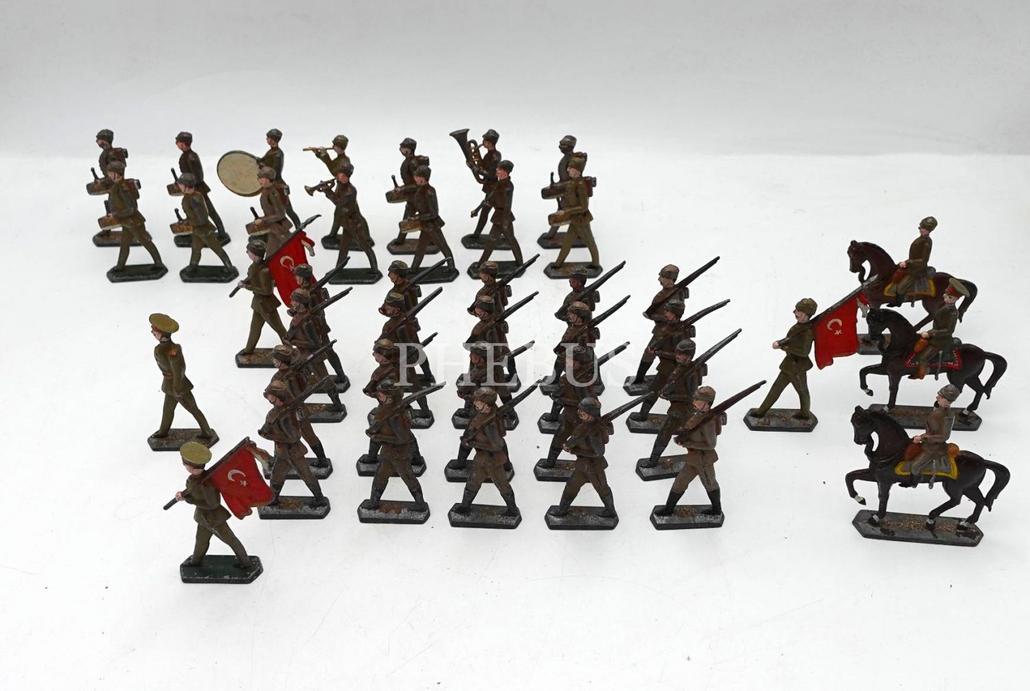 Erken dönem, yerli malı, 41 parçadan oluşan kurşun asker seti, çok nadir, ortalama: 7x3 cm