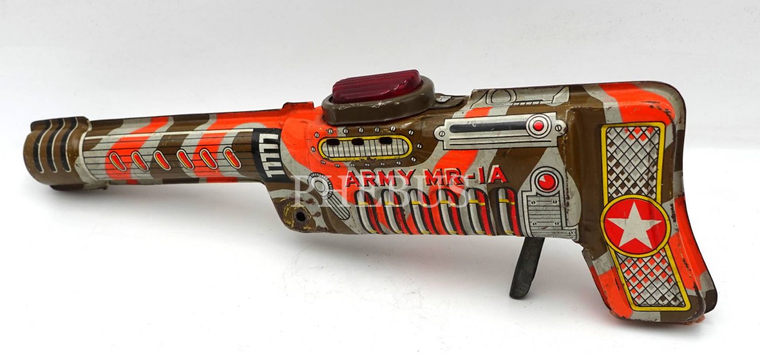 Japon malı ARMY MR-1A model teneke oyuncak silah, 24x7x3 cm