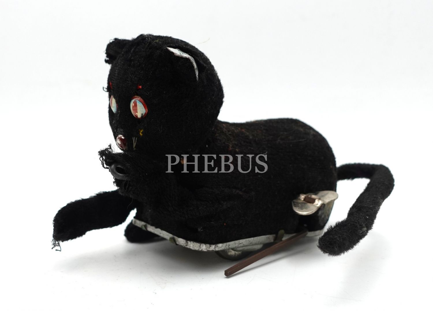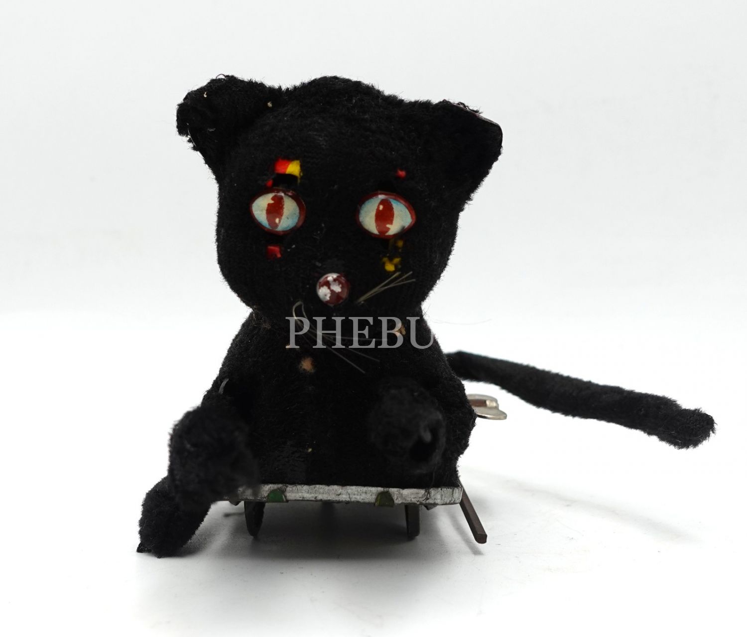 Japon malı kurmalı teneke oyuncak kedi, çalışmıyor haliyle, 12x8x5 cm