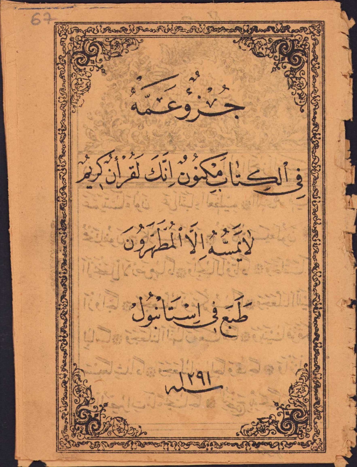 Kuran-ı Kerim'den Sureler - Amme Cüzü, İstanbul, 1291, 30 sayfa, sırtı haliyle, 13x20 cm