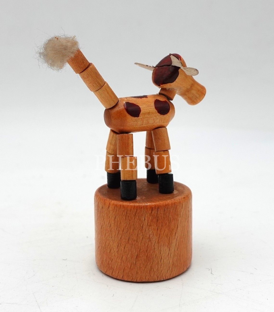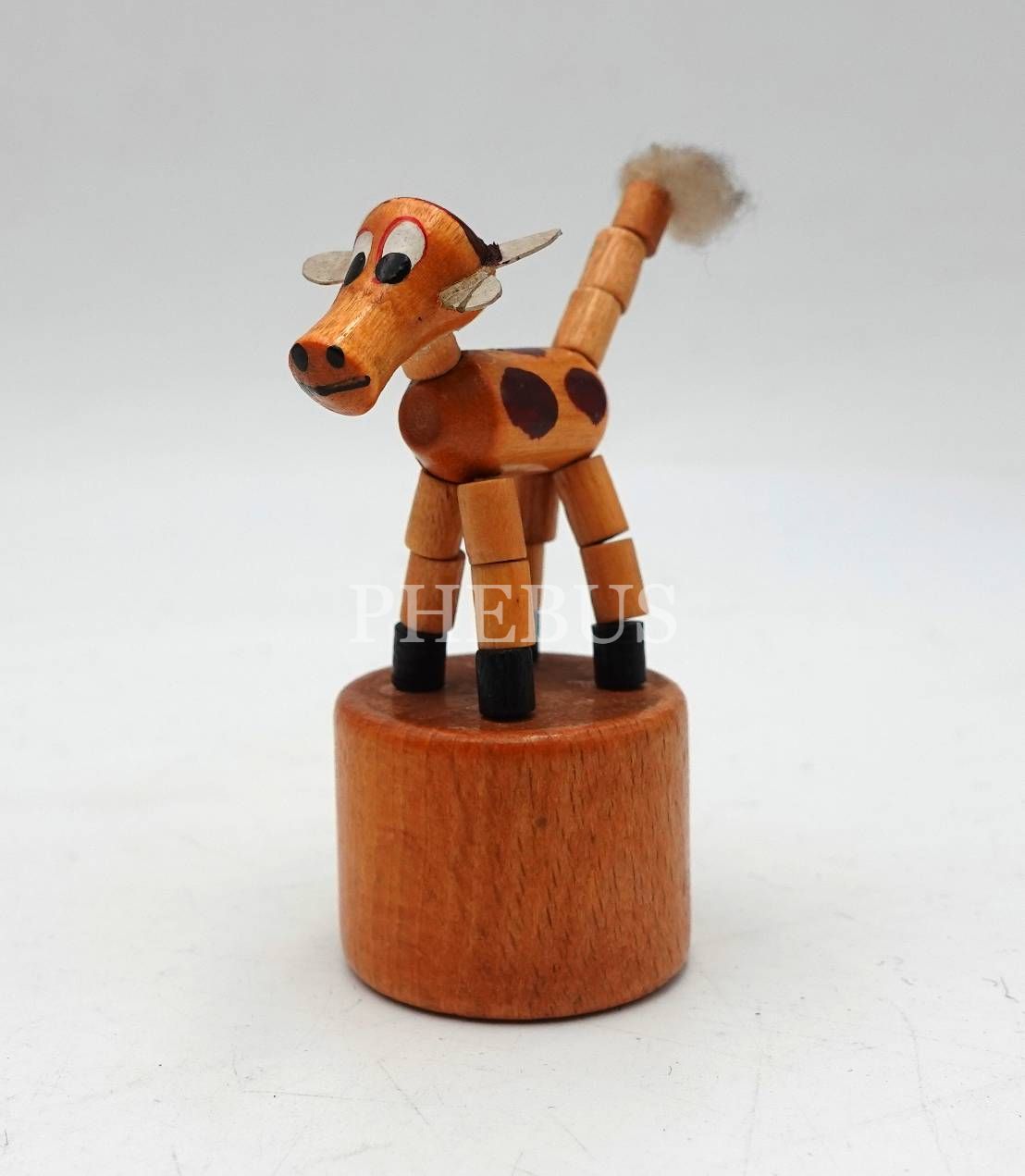 Ahşap, hareketli oyuncak inek figürü, 7x3 cm
