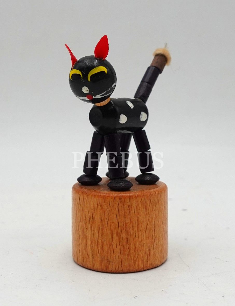Ahşap, hareketli oyuncak kedi figürü, 6x3 cm