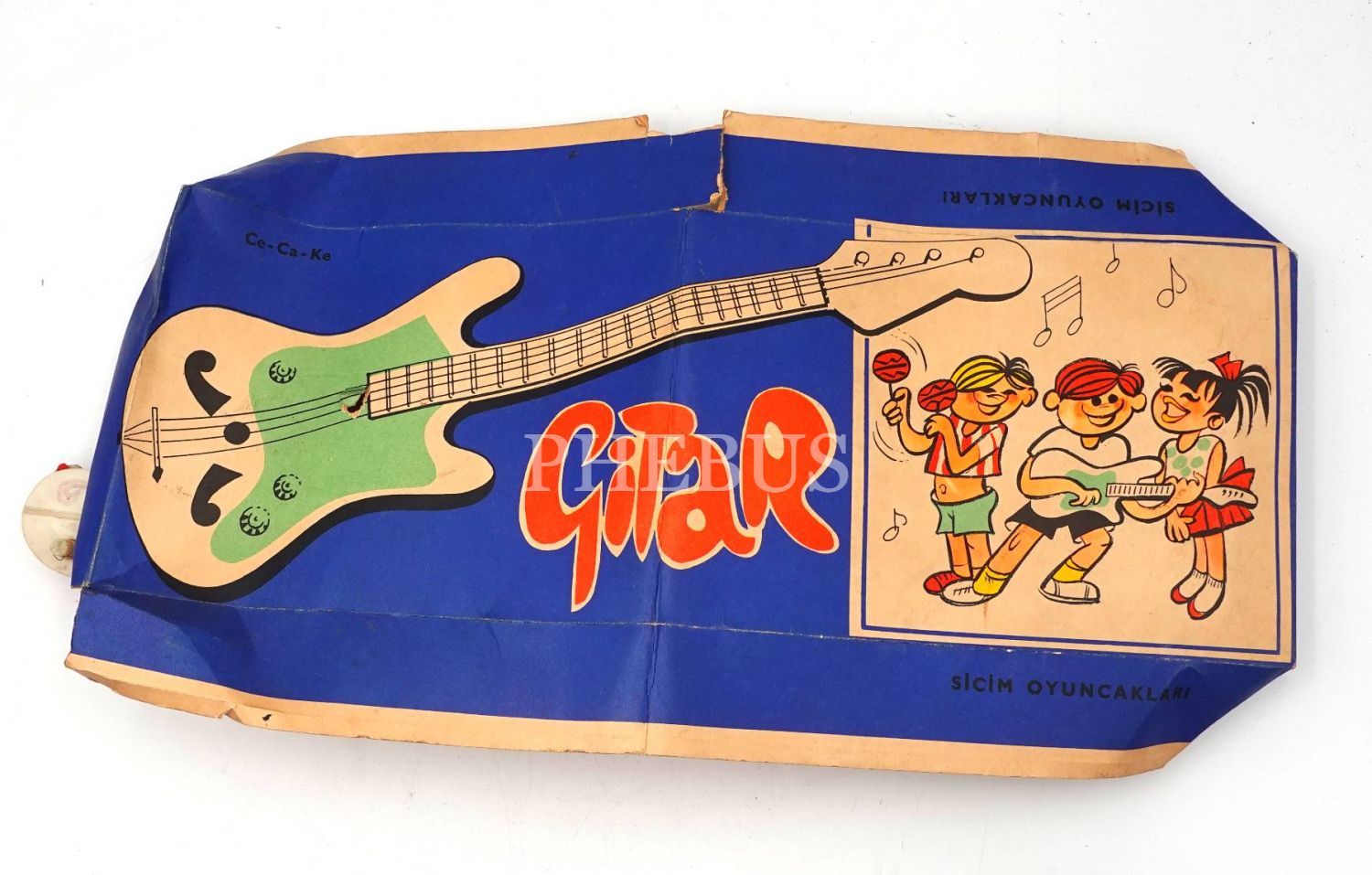 Yerli malı CE-CA-KE oyuncak gitar, karton kutu kapağı ile beraber, kutu kapağı haliyle, 41x4 cm