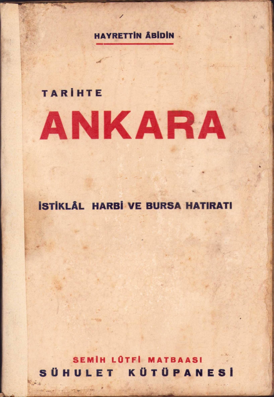 Tarihte Ankara - İstiklal Harbi ve Bursa Hatıratı, Hayrettin Abidin, Semih Lütfi Matbaası, 1934, 92 sayfa, 14x20 cm