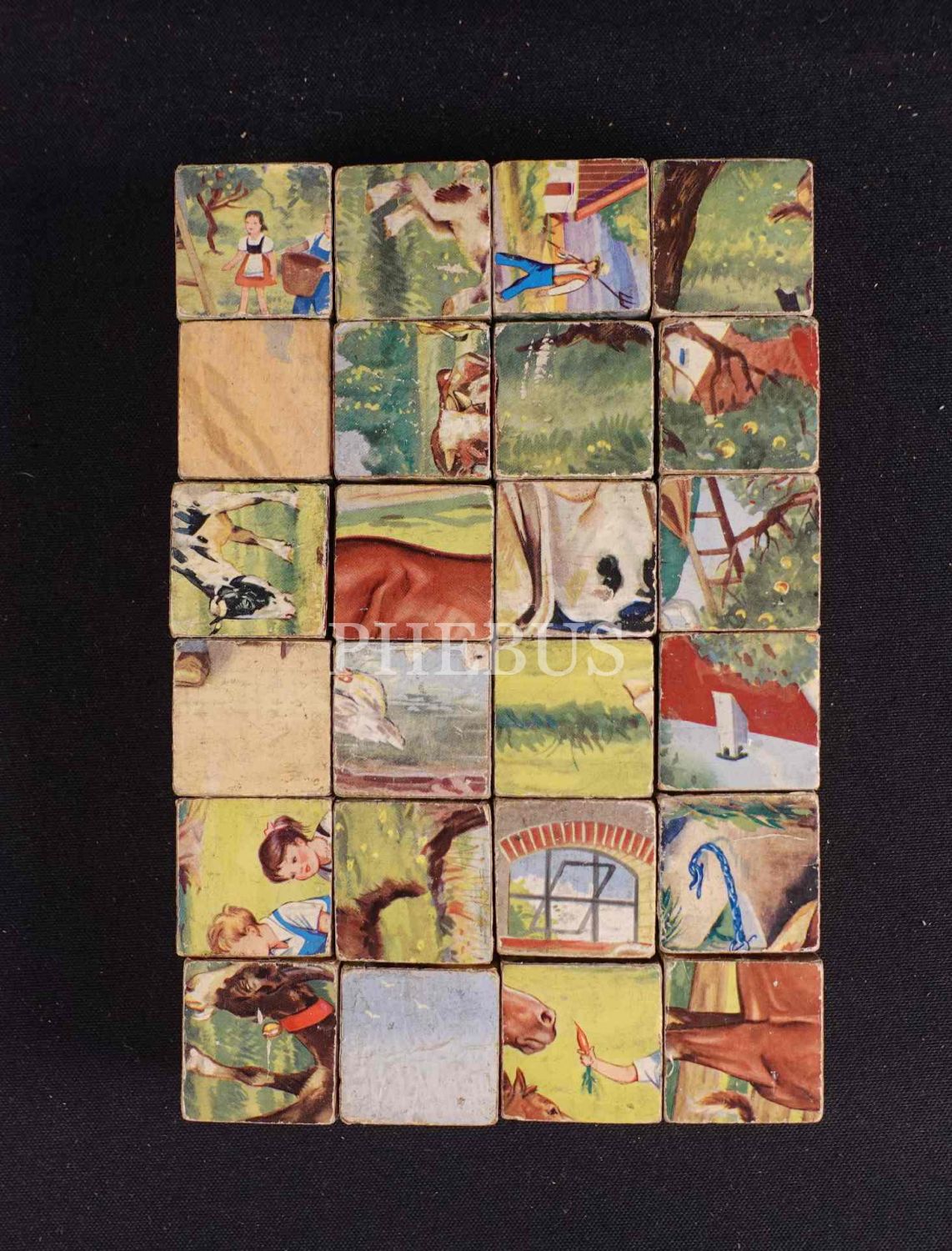Karton kutuda ahşap puzzle oyunu (24 küp), her biri 4x4 cm, kutu: 24x18x6 cm