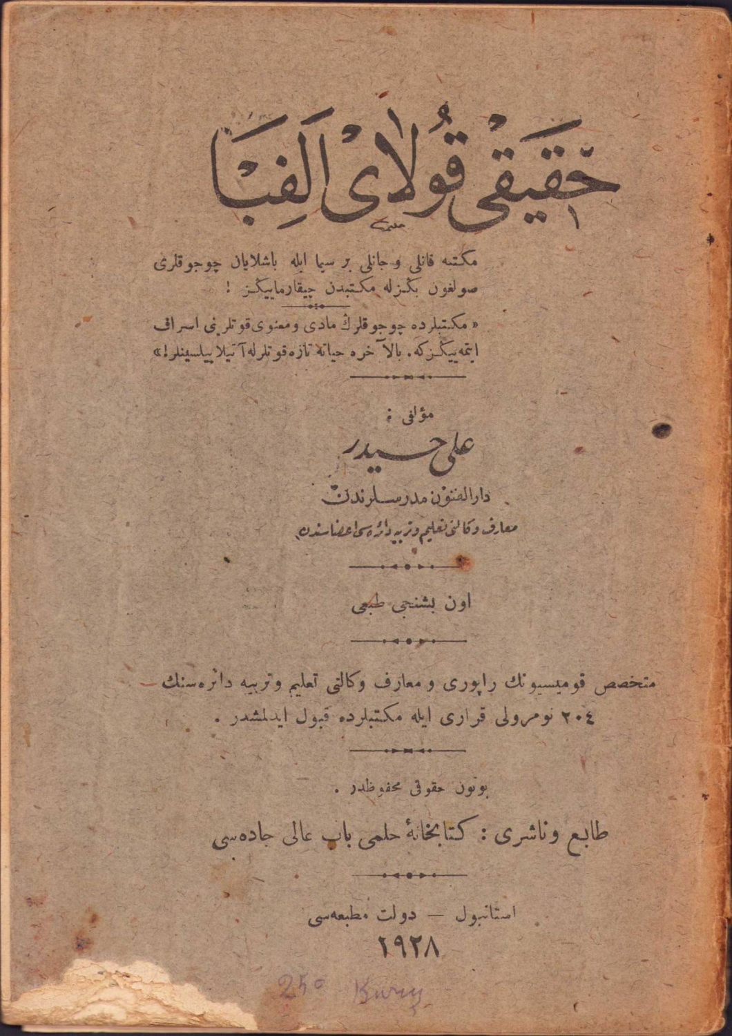 Hakiki Kolay Elifba, Ali Haydar, on beşinci baskı, Devlet Matbaası, İstanbul, 1928, Osmanlıca, cilt yıpranmış, 79 sayfa, 13x19 cm
