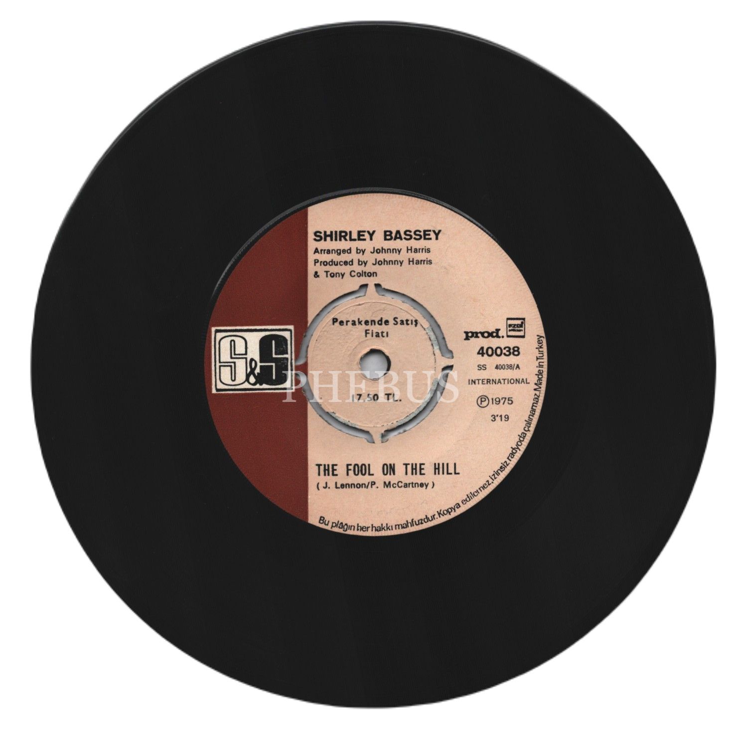 SHIRLEY BASSEY - The Fool On The Hill (The Beatles "Magical Mystery Tour"dan Cover / The Fool On The Hill ("The Happy Ending" Filminden) (Türkiye Baskı)