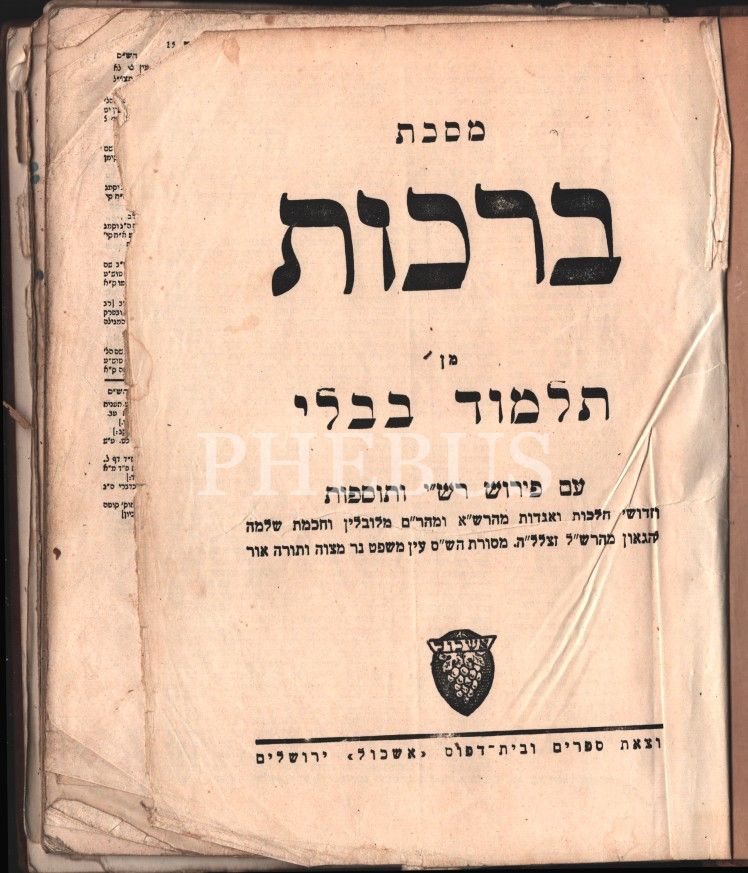 Masechet Berachot, (מסכת ברכות ), Talmud Bavli (Babilonian Talmud - תַּלְמוּד ), Rashi Yorumlu, Kudüs Baskısı, Eshkol Matbaası,
