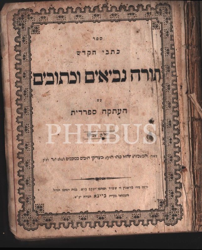 İbrani Kutsal Kitabı, Tora (Tevrat), Nebiler Kitabı נְבִיאִים , Ketuvim כְּתוּבִים, İkinci Bölüm, Viyana baskısı, ön kapak iç sayfası 5663 (1903 senesi) ibareli, Franc de Shamir ve Yaacov Bush tarafından basılmıştır, Ladino tercümeli ve yorumlu, 918 s.