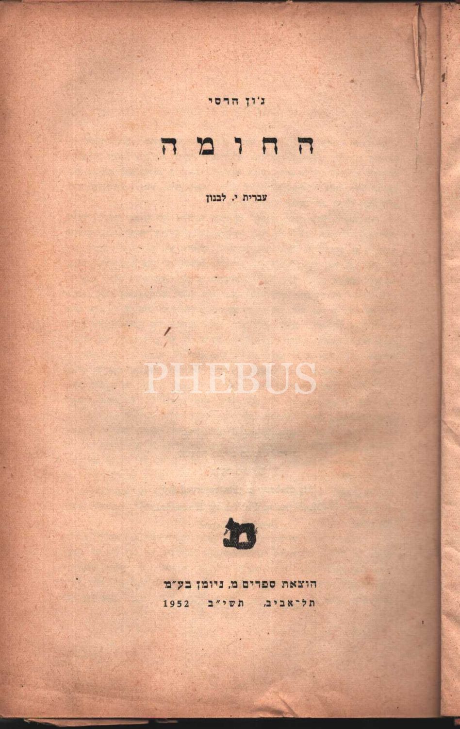 Achoma ( החומה ), Tel Aviv, 1952, Levinson Arşivi, Newman Yayınları, yazan: John Herzi, çev: Y. Lebanon, 578 s.