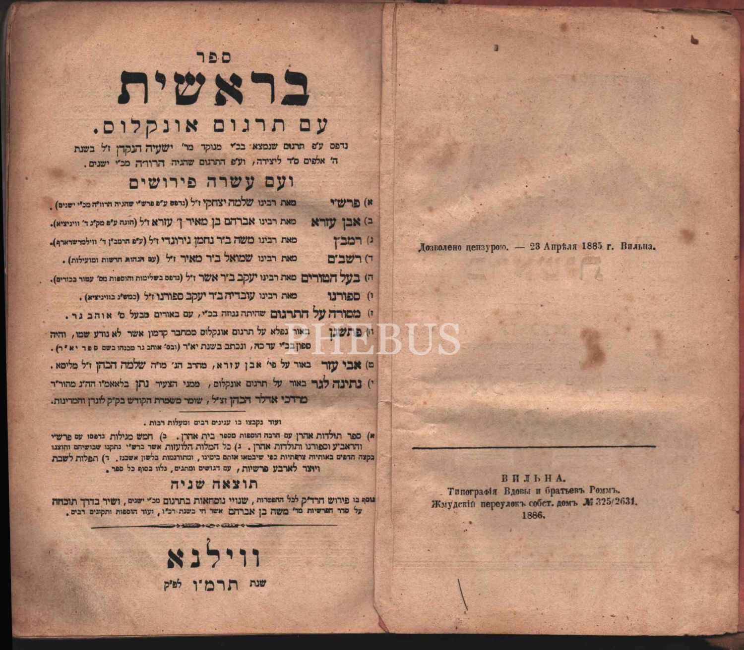 İbranice Kitap, Tevrat 1. Kısım Bereshit (בְּרֵאשִׁית‎), Litvanya Vilna baskısı, Haalmana ve Haahim Raam, 533 s. 2. baskı, Onkalus ve Rashi yorumlu