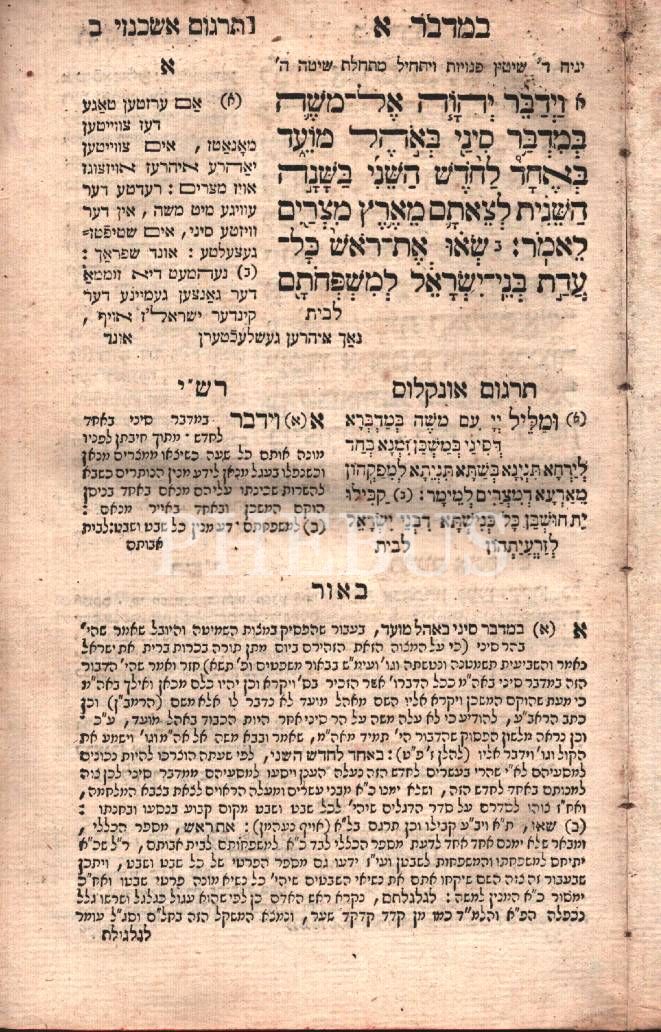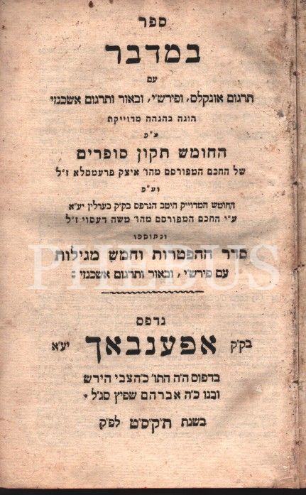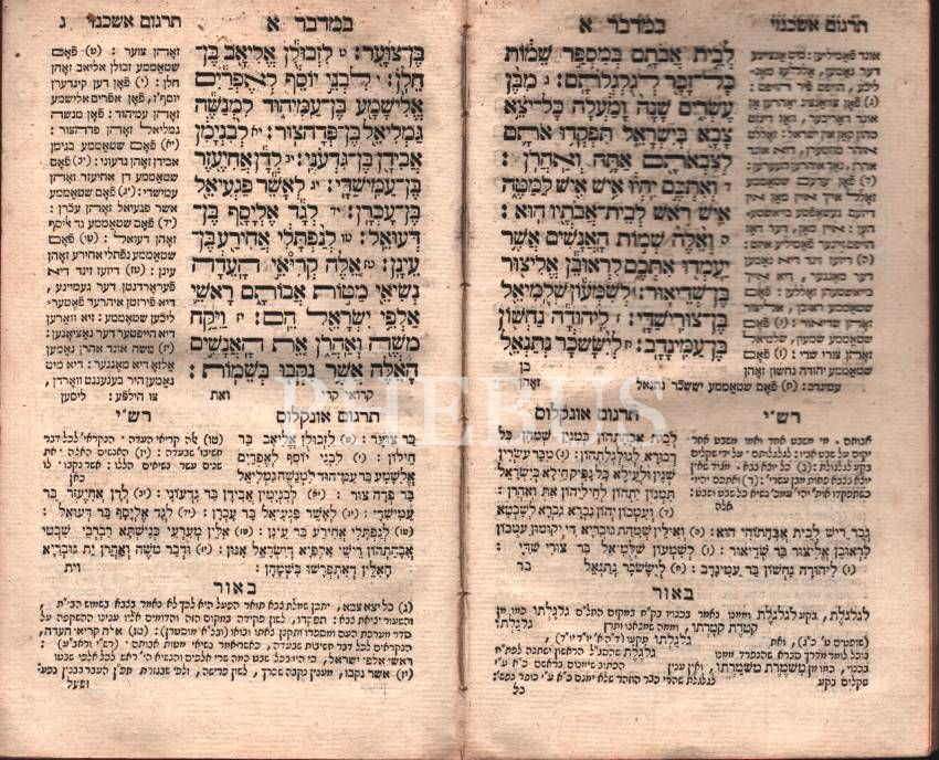 Tevrat 4. Kitabı Sefer Bamidbar ( בְּמִדְבַּר ) Rashi ve Onkales Yorumlu ve Tamamlayıcı Bölümler, Rut Efsanesi, Almanya Offenbach 1809 (תקס´ט) baskısı, 472 s.