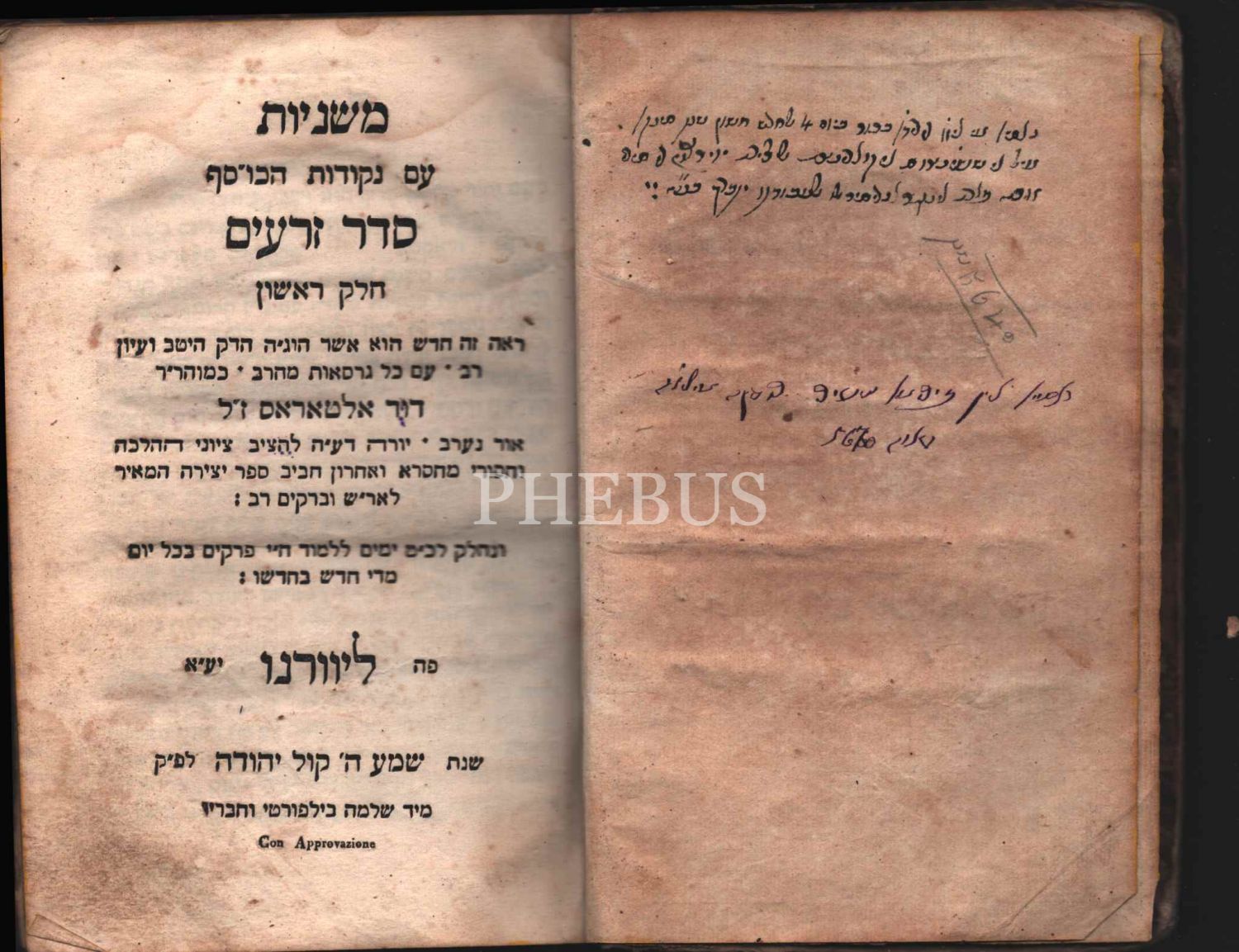 İbranice Kitap, Mishnayot, Sefer Zeraim (מִשְׁנָה), Dini Kaideler Üzerinde Bilginler Arasındaki Görüşler. İtalya Livorno Shelomo Bilforti ve Ort. Matbaası, 128 s.