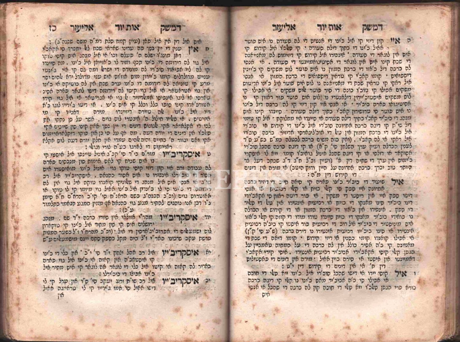 Sefer Damesek Eliezer ( ספר דמשק אליעזר ), Rabbi Eliezer Behar Shem Tov Papo, İzmir baskısı, Ladino Yazılı, Dini Tabirler ve İzahları, Alfabetik Sıraya Göre, İzmir Baskısı Aharon Yeshua Matbaası, 392 s.