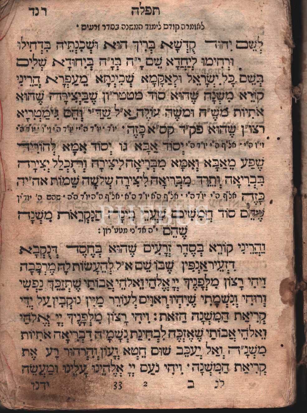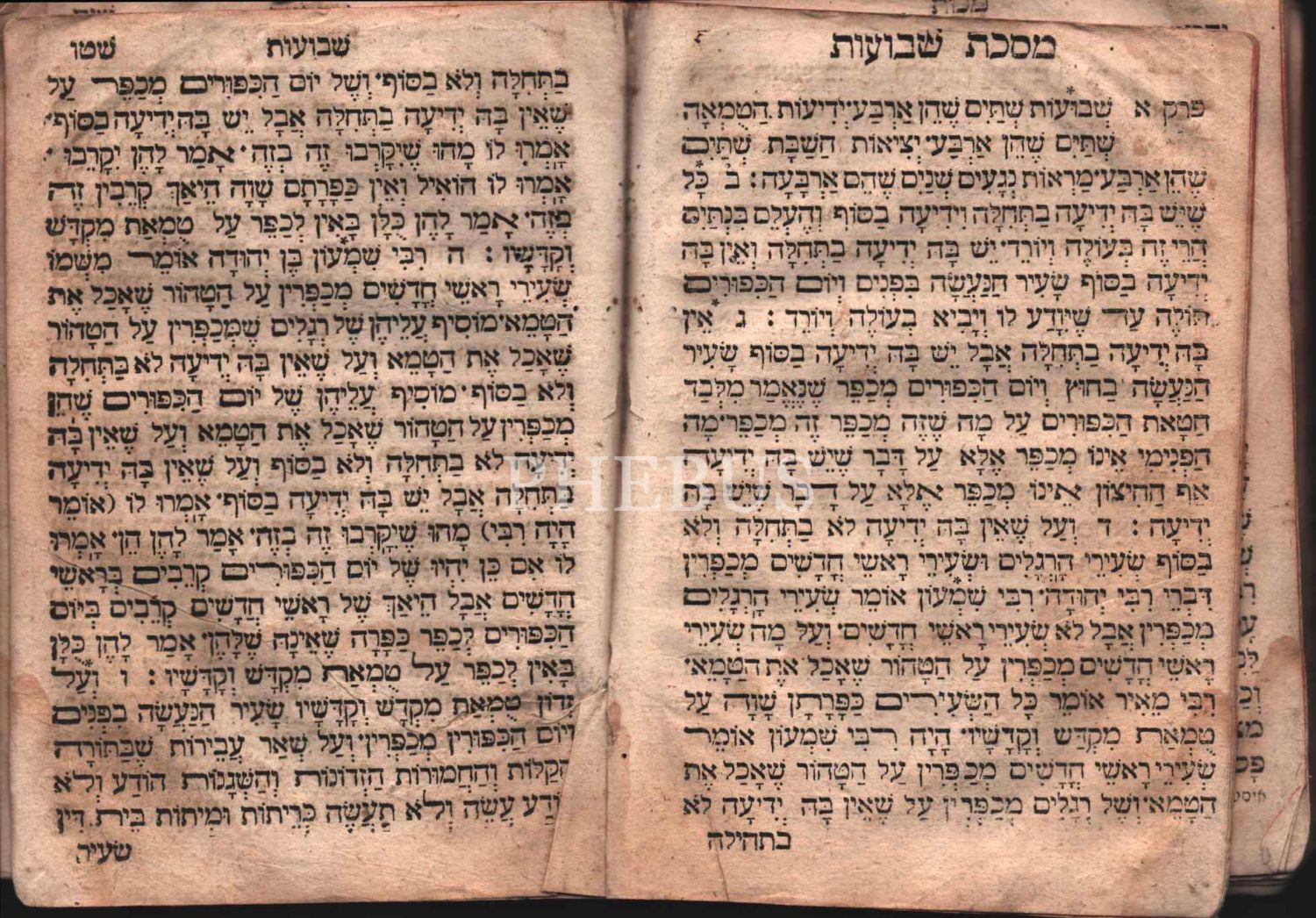 Tefila (תפילה), Sefer Nezikim ( ספר נזיקים ), Makot (מכות), Shavuot (שבועות), Adiyot (עדיות), Avoda Zara (עבודה זרה), Avot (אבות) Başlıklarını İçerir. Deri cildinde olup sırtı yorgun haliyledir. 17 x 12 cm.