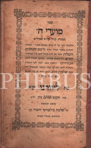 Sefer Moadei Hashem, Sefarad Adetlerine göre 3 Bayram (Pesach, Shavuot, Sukkot) İle İlgili Günlük Dua Kitabı, [Shalosh Regalim], İtalya Livorno Shelomo Bilforti ve Ort. Matbaası