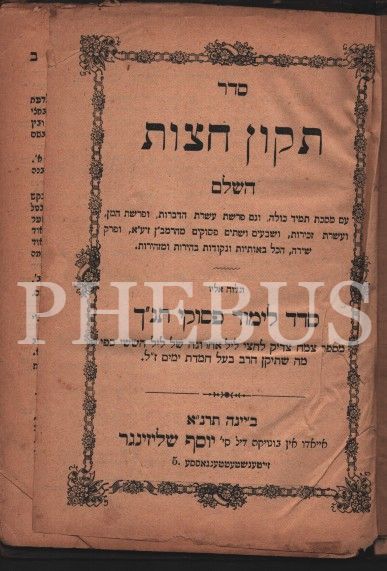Sefer Tikun Hatsot (ספר תיקון חצות ), Tevrat, Nebiler Kitabı ve Yazılı Metinler ile İlgili Öğretiler İçerir. Viyana Josef Shlizinger Matbaası, 1891 (5651), 32 s.