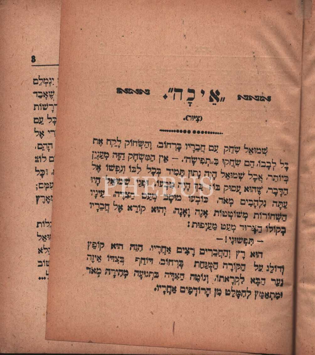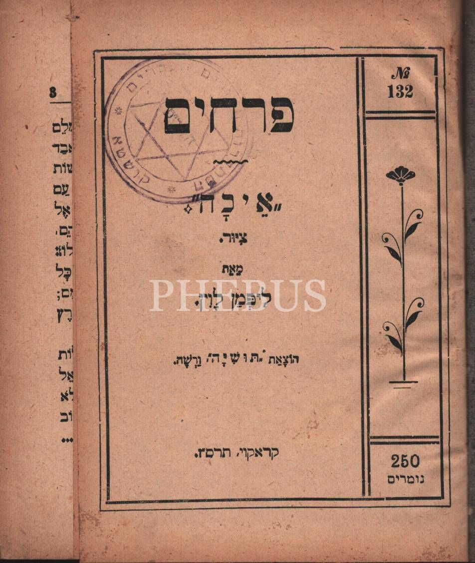 Perahim (פרחים) Kısa Hikayeler Kitabı, İstanbul Karaköy (T?sya Matbaası), 5667 (1907) baskısı