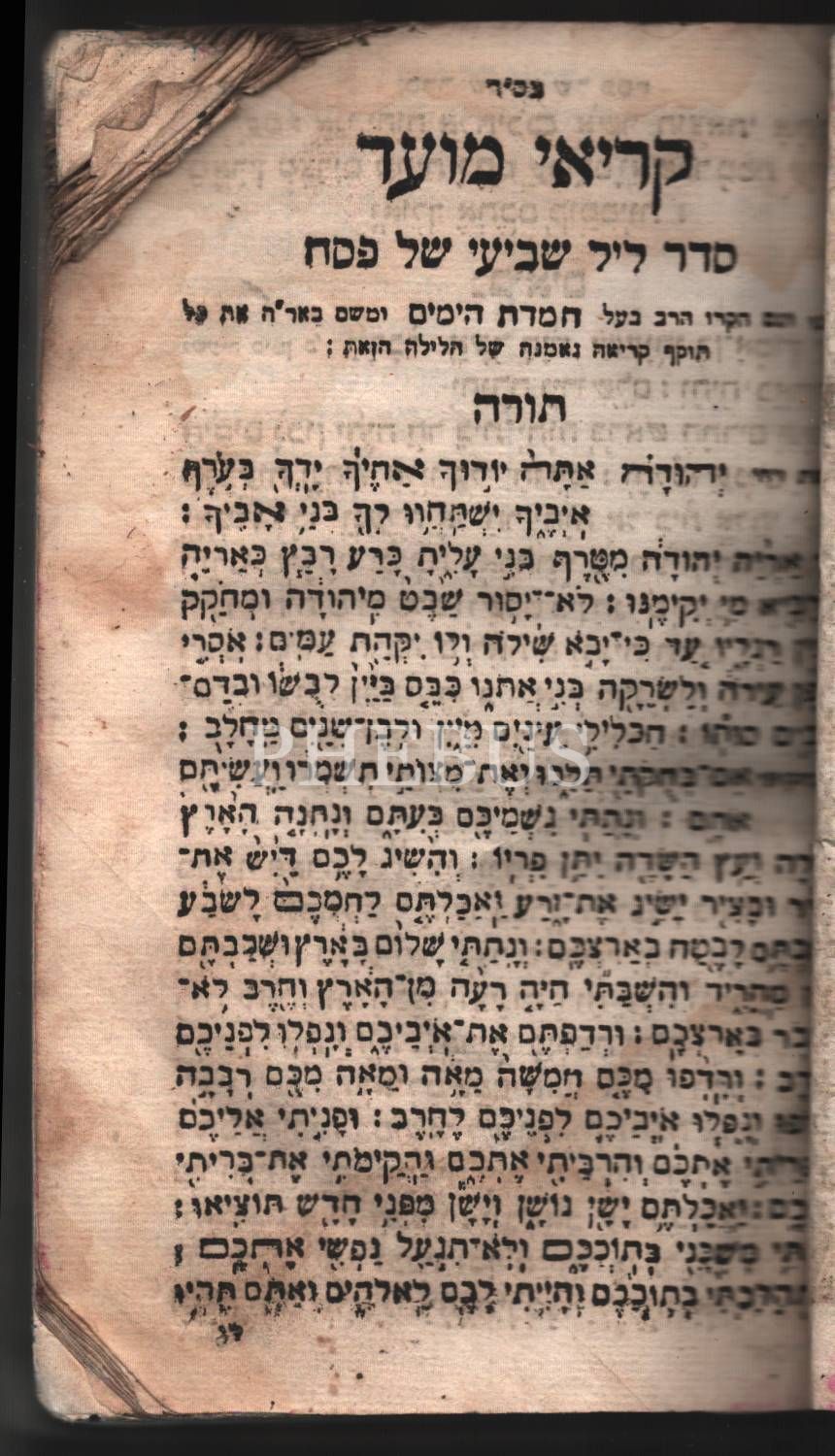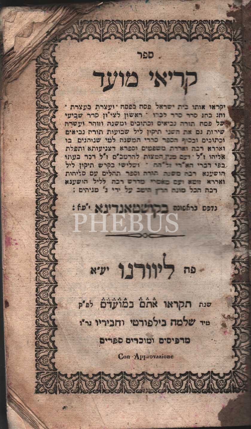 Kriey Hamoed, (קּרּיּﬡיּ מּוּﬠדּ) Pesah-Shavuot-Hoshana Raba Bayram Dualar, Livorno baskısı, Shlomo Bilforti Matbaası, 406 s.