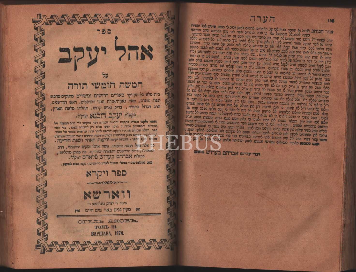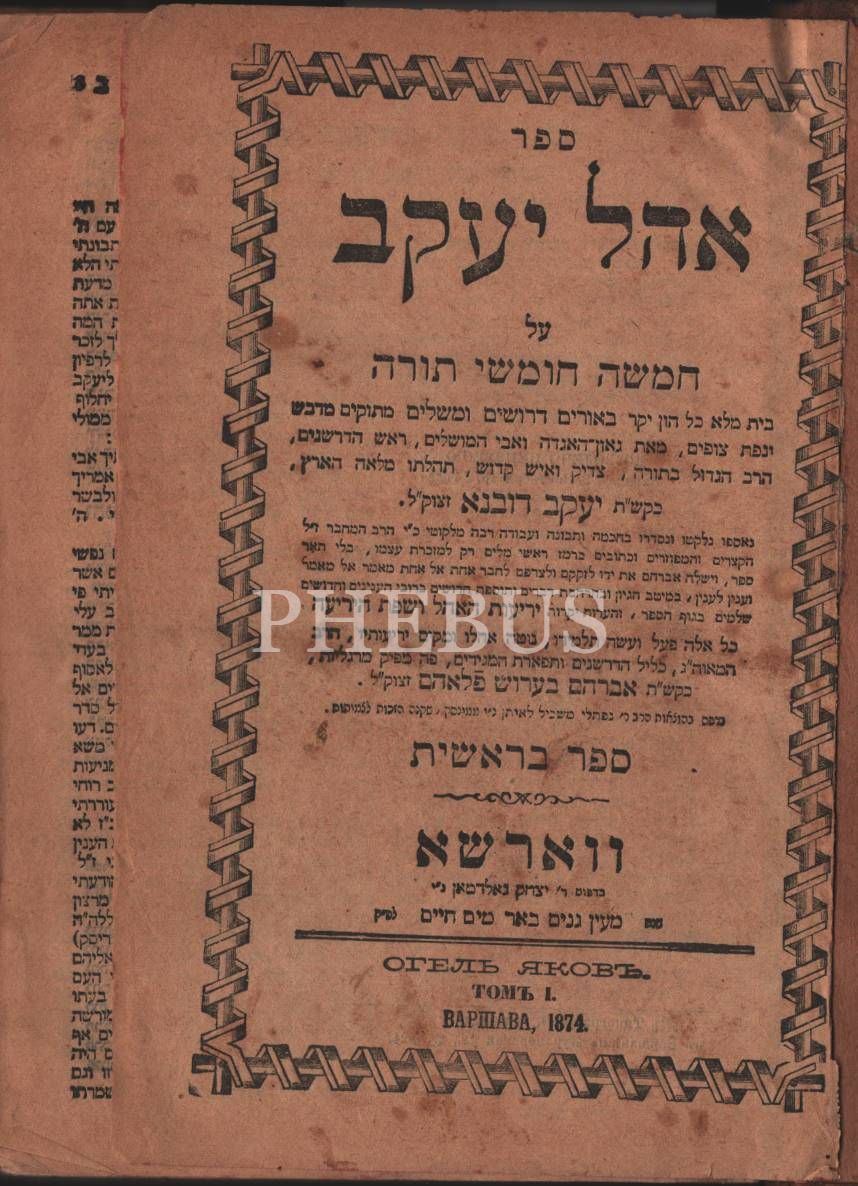 Sefer A´El Yakov, Tevrat´ın ilk 3 kitabı, Bereshit (בְּרֵאשִׁית‎), Shemot (שְׁמוֹת‎ ), Vayikra (וַיִּקְרָא‎ ) Varşova baskısı 1874, yorumludur.
