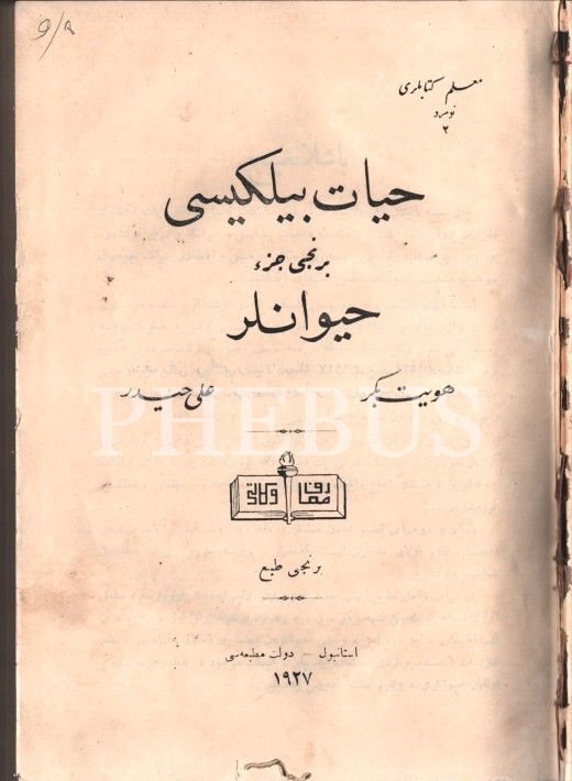 Eğitim tarihi: Muallim Kitapları serisinden HAYAT BİLGİSİ- 1. CÜZ: HAYVANLAR, Hüviyet Bekir-Ali Haydar, Devlet Matbaası, İstanbul 1927, 319 s., 17x24 cm